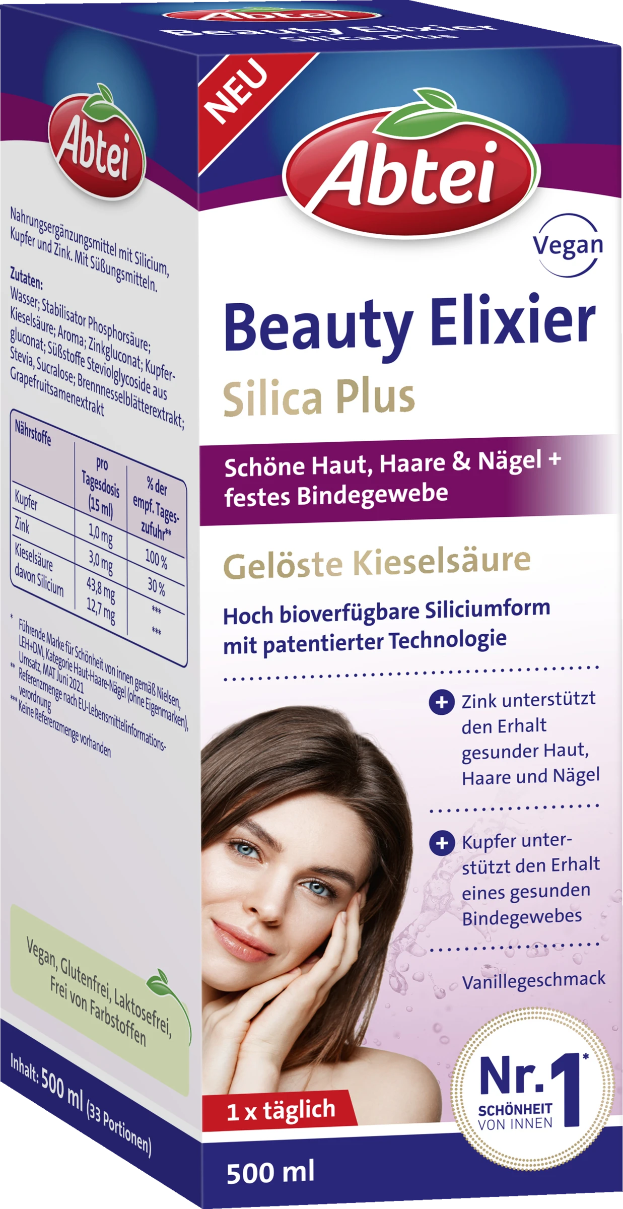 Schöne Haut, Haare & Nägel + festes Bindegewebe. Gelöste Kieselsäure. Hoch bioverfügbare Siliciumform mit patentierter Technologie.