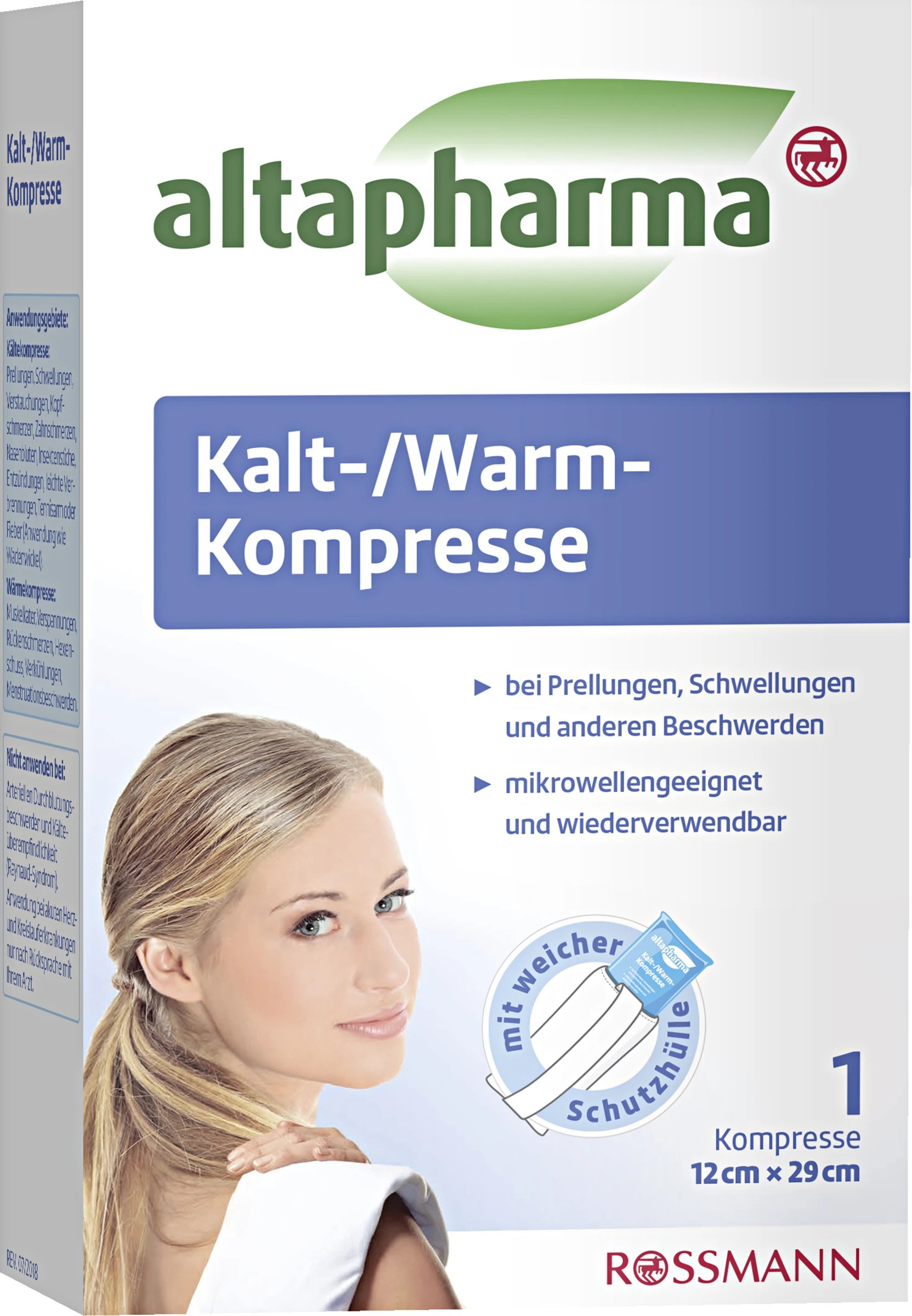 Altapharma Kalt-/Warm-Kompresse im Format 12 × 29 cm bietet schnelle Hilfe bei Prellungen, Schwellungen und anderen Beschwerden. Sie ist sowohl für die Warmanwendung (Mikrowelle oder Wasserbad) als auch für die Kaltanwendung sehr gut geeignet. Die beigefügte Schutzhülle schützt Ihre Haut vor der Kälte bzw. Wärme und ist dabei weich und geschmeidig. Durch das elastische Befestigungsband können Sie die Schutzhülle am Körper einfach und bequem anbringen.