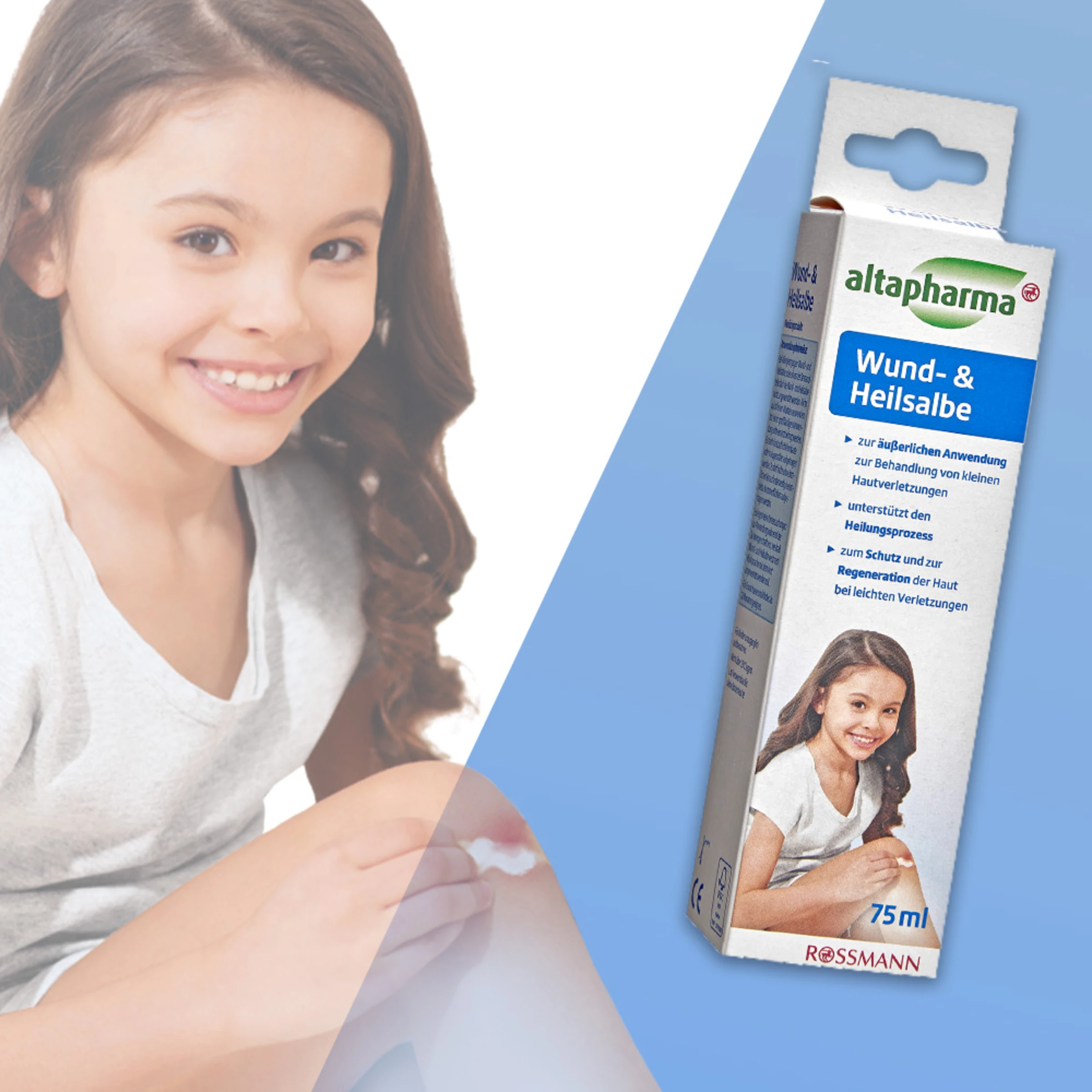 Der natürliche Wundheilungsprozess der Haut dauert je nach Verletzungsgrad erfahrungsgemäß seine Zeit. Mit der altapharma Wund- & Heilsalbe kann die Phase der Wundheilung aktiv verkürzt werden. Das Medizinprodukt basiert auf einer physikalischen Wirkungsweise und hilft so der verletzten Haut, sich rascher zu erholen. Altapharma Wund- & Heilsalbe ist eine verlässliche Hilfe bei oberflächlichen Schürf-, Schnitt- und Risswunden, insbesondere bei verkrusteten Wunden, Schorfbildung und sehr trockenem Hautzustand. Sie schützt die geschädigte Haut und fördert den Heilungsprozess.