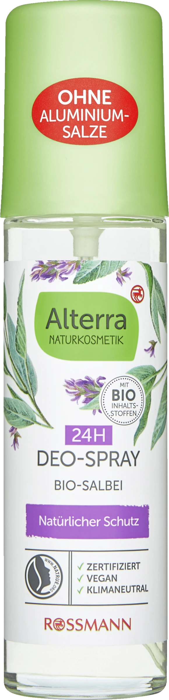 Das Alterra Deo-Spray Salbei sorgt mit seinem sinnlichen Duft den ganzen Tag für ein angenehm pflegendes Gefühl.