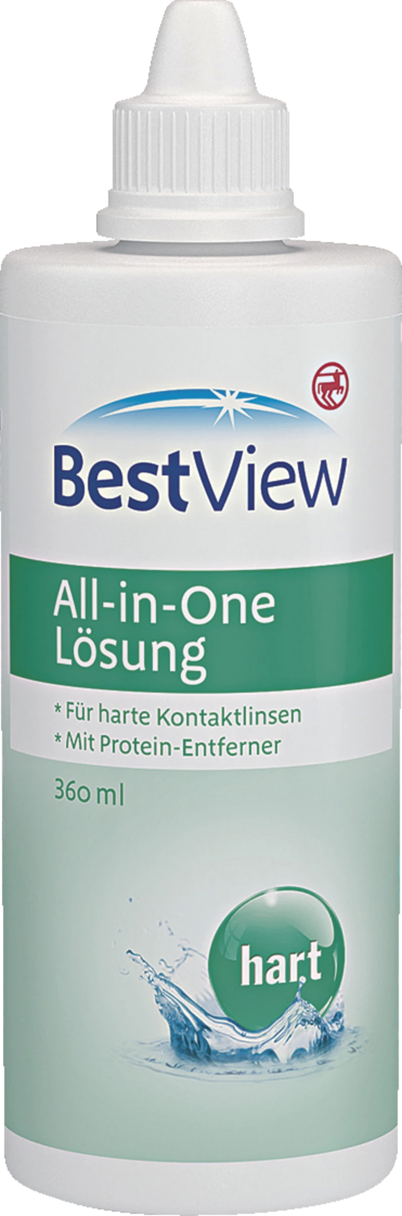Best View All-in-One Lösung ist ein Ein-Schritt-System zur schonenden Reinigung, Desinfektion, Proteinentfernung und Aufbewahrung von harten Kontaktlinsen.