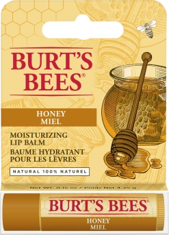 Burt’s Bees® feuchtgkeitsspendender Lippenbalsam pflegt die Lippen und verleiht ihnen ein angenehmes Gefühl. Angereichert mit reichhaltigen Fruchtextrakten und Bienenwachs sowie Ölen und Butter spendet dieser Lippenbalsam trockenen Lippen die notwendige Feuchtigkeit und pflegt sie samtweich. Mit einem matten Finish und einer feuchtigkeitsspendenden Textur, gleitet dieser beruhigende, farblose Lippenbalsam sanft über die Lippen. Für die Pflege unterwegs, stecken Sie den Lippenbalsam ganz einfach in Ihre Tasche oder Ihre Geldbörse.