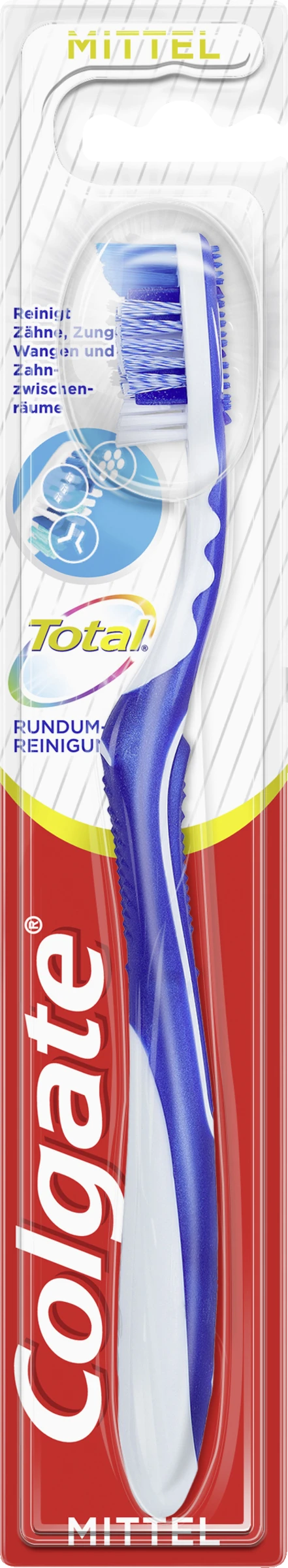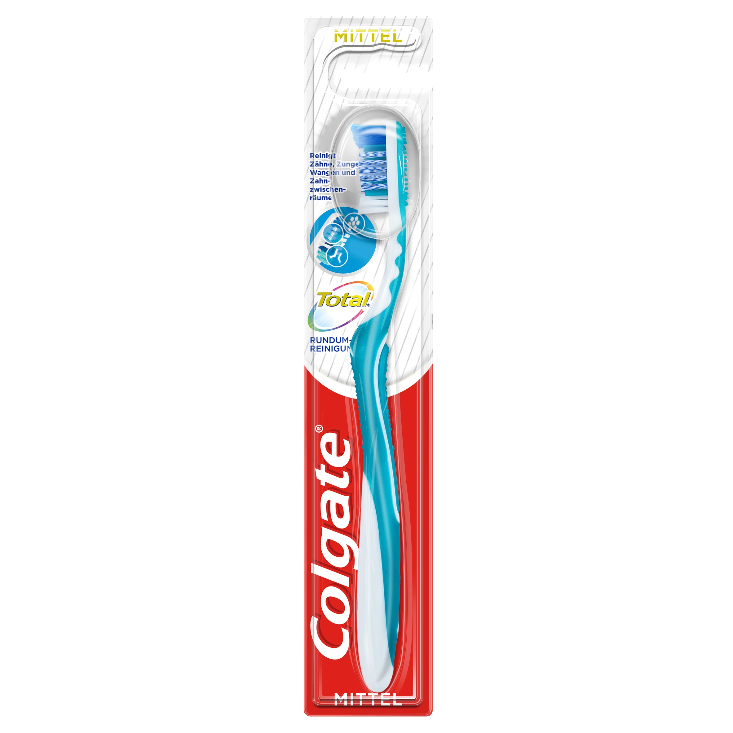 Die Colgate Total Rundum-Reinigung* Zahnbürste sorgt für einen gesunden Mund dank 4-facher Reinigungsmechanik.