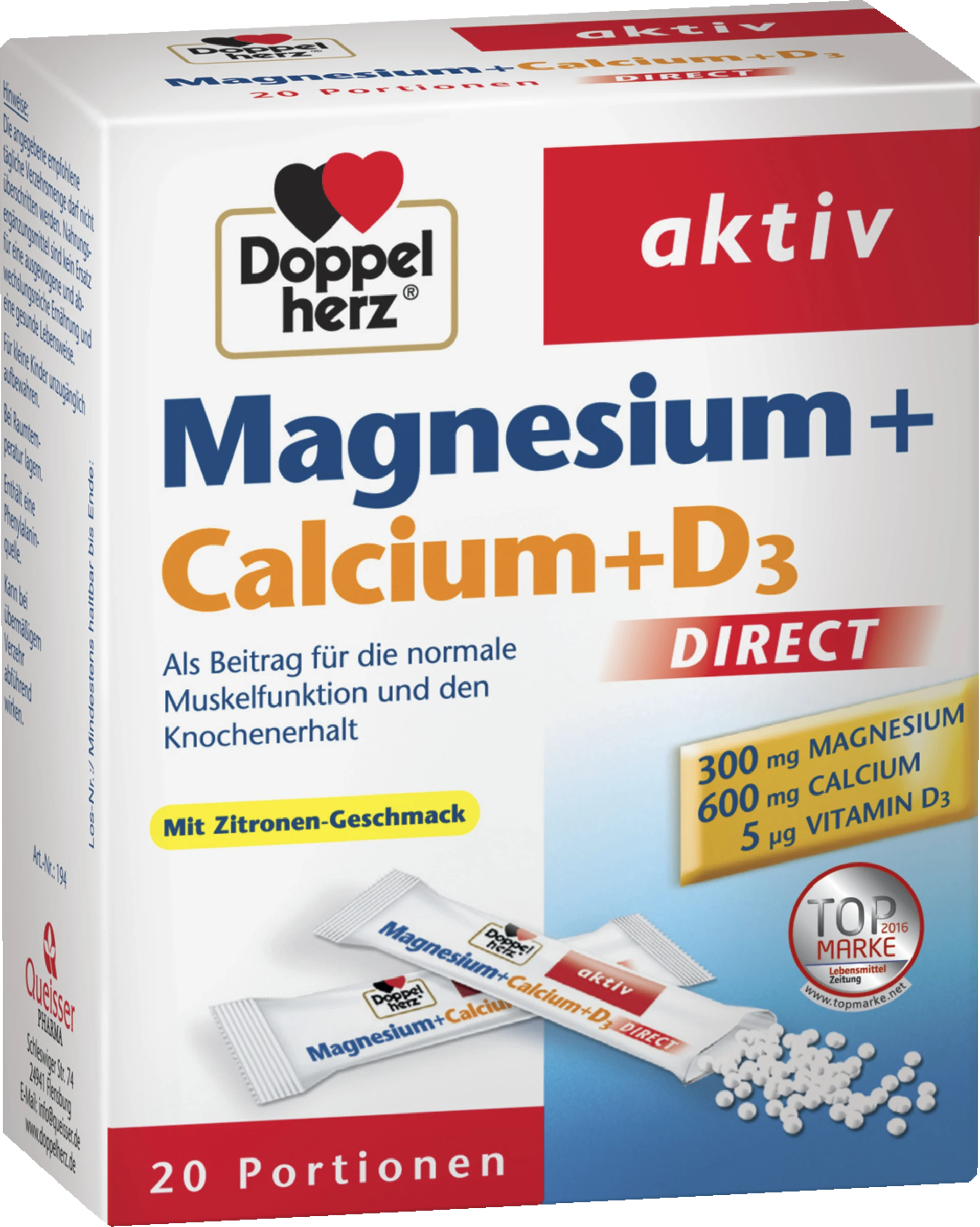 Doppelherz aktiv Magnesium+Calcium+D3 Direct: