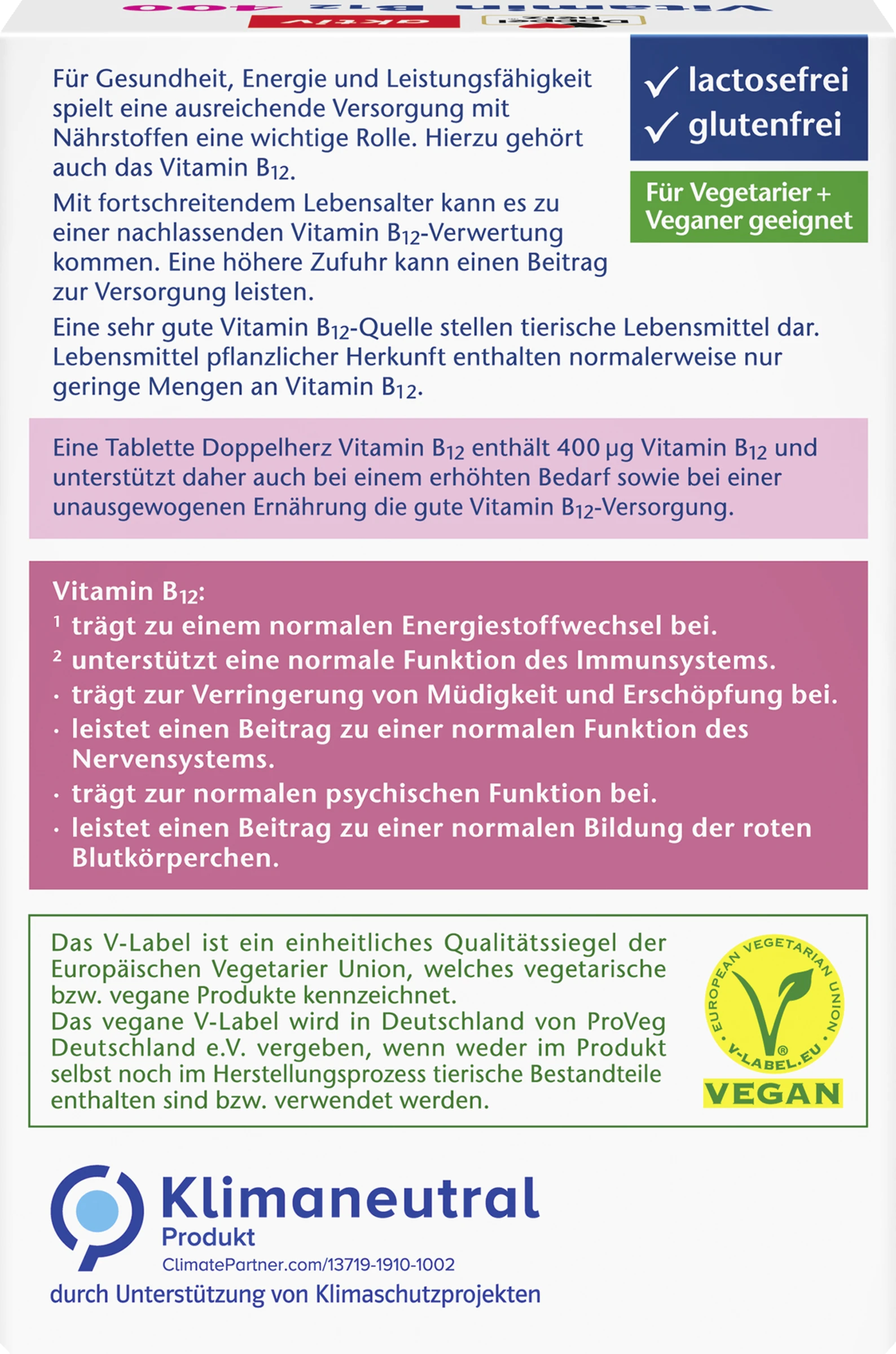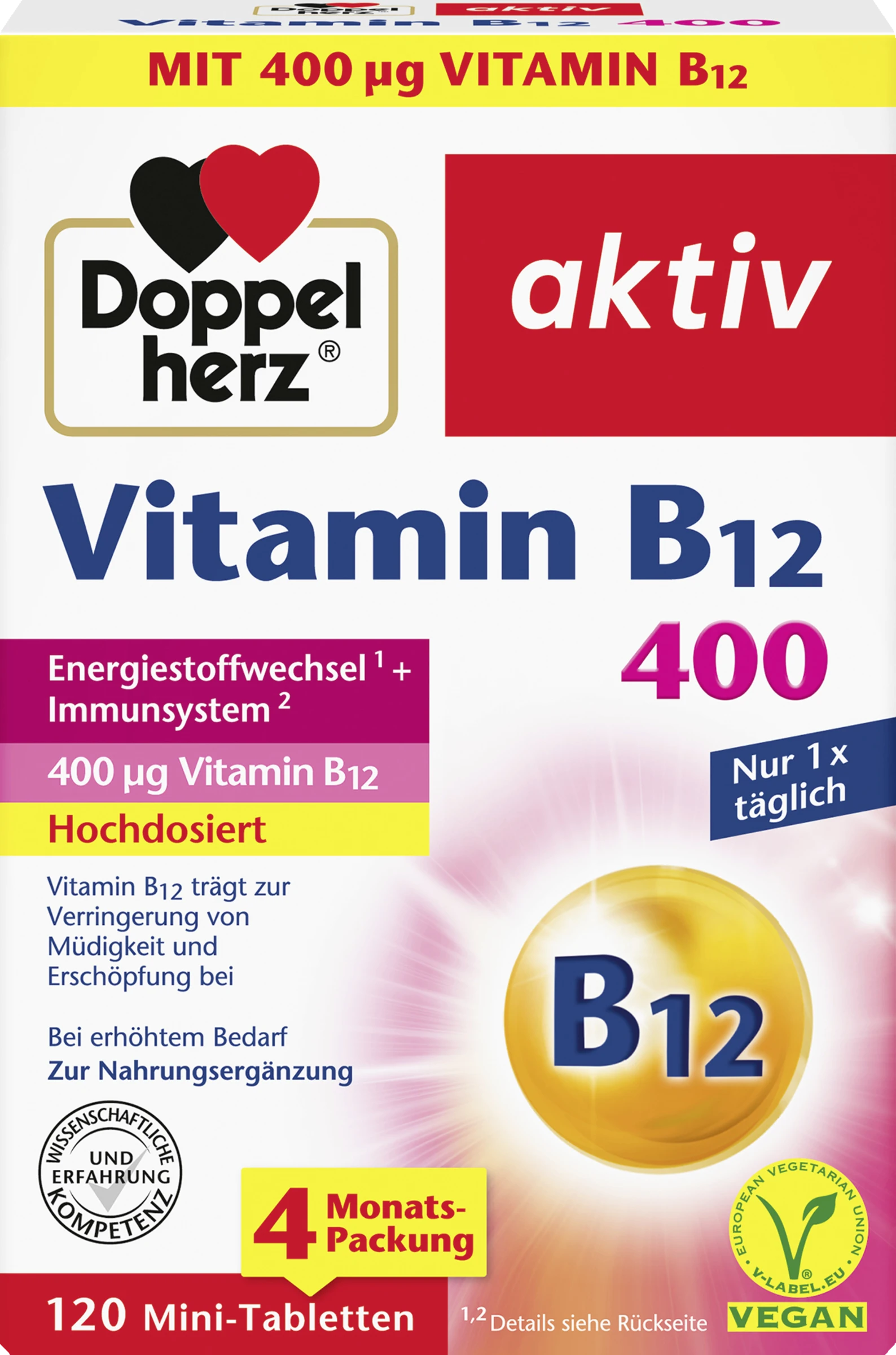 Eine Mini-Tablette von Doppelherz enthält 400 µg Vitamin B12 und unterstützt daher auch bei einem erhöhten Bedarf die gute Vitamin-B12-Versorgung.