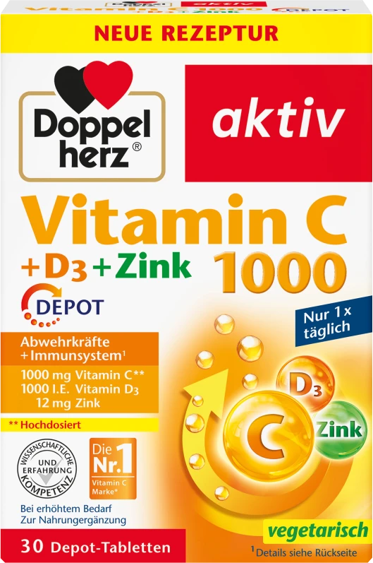 Tabletten mit Vitamin C, D und Zink – Nahrungsergänzungsmittel