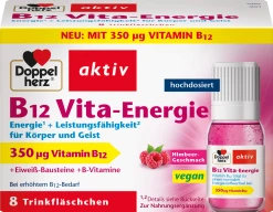Für Energie¹ und Leistungsfähigkeit² spielt eine ausreichende Versorgung mit Nährstoffen eine wichtige Rolle. Doppelherz B12 Vita-Energie enthält 350 µg hochdosiertes Vitamin B12 in Kombination mit drei ausgesuchten B-Vitaminen und den Eiweißbausteinen L-Glutamin und L-Serin.Vitamin B12 + Vitamin B6 + Niacin tragen bei¹ zu einem normalen Energiestoffwechsel² zur Verringerung von Müdigkeit und Erschöpfung