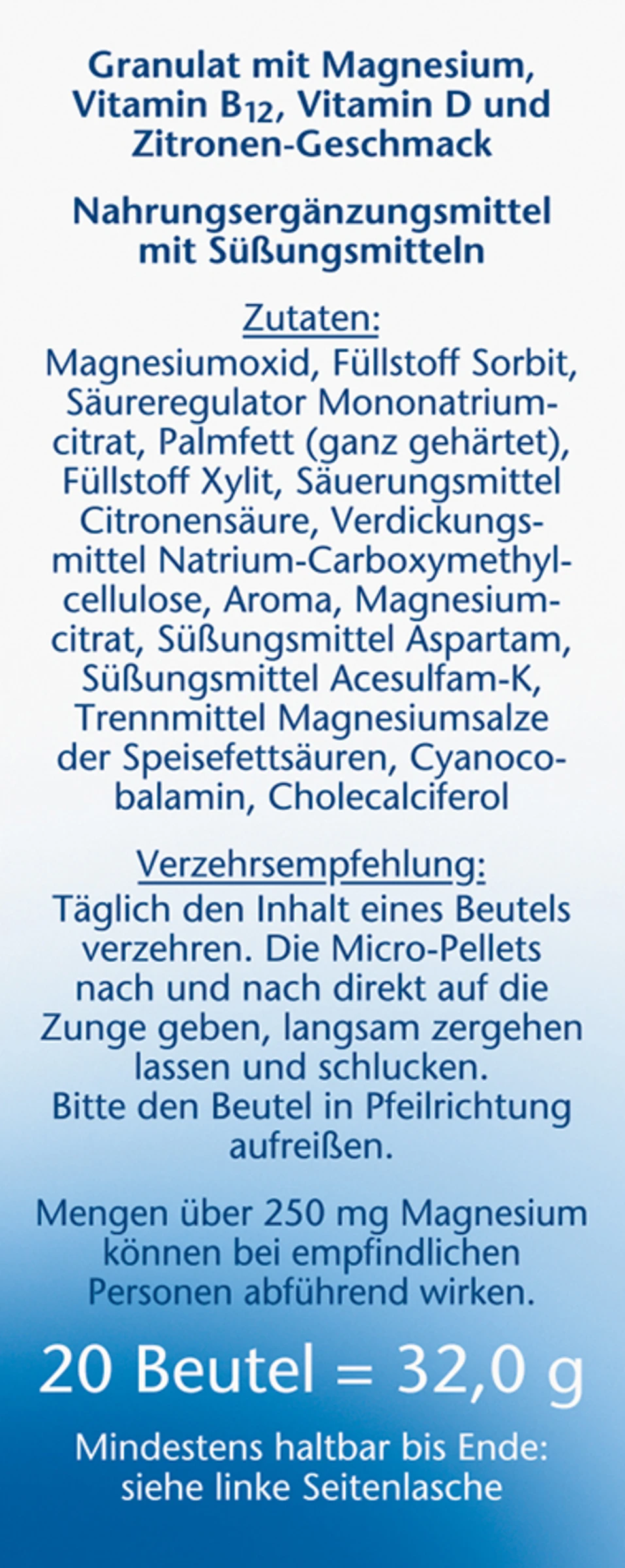 Granulat mit Magnesium, Vitamin B12, Vitamin D und Zitronen-Geschmack