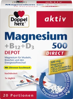 Magnesiumoxid, Füllstoff Sorbit, Säureregulator Mononatriumcitrat, Palmfett (ganz gehärtet), Füllstoff Xylit, Säuerungsmittel Citronensäure, Verdickungsmittel Natrium-Carboxymethylcellulose, Aroma, Magnesiumcitrat, Süßungsmittel Aspartam, Süßungsmittel Acesulfam-K, Trennmittel Magnesiumsalze der Speisefettsäuren, Cyanocobalamin, Cholecalciferol. Lactose- & glutenfrei.