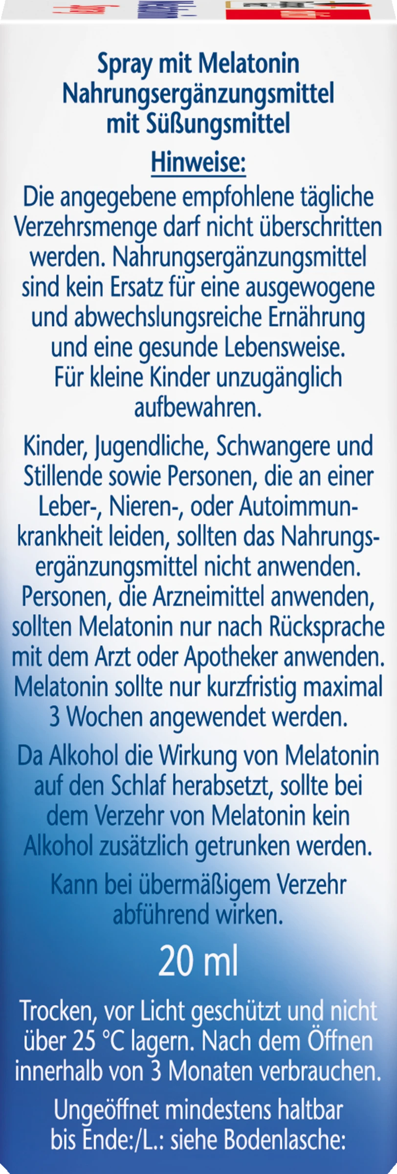 2 Sprühstöße vor dem Schlafengehen direkt auf die Zunge sprühen und schlucken. Vor Gebrauch schütteln.