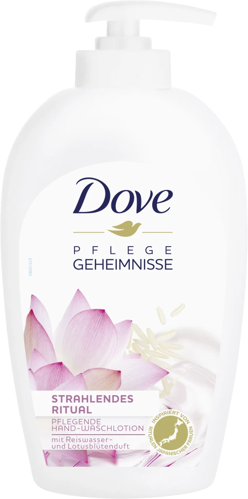 Inspiriert von dem Schönheitsritual dieser japanischen Frauen hat Dove die pflegende Hand-Waschlotion Strahlendes Ritual mit Reiswasser und Lotusblütenduft entwickelt. Das Gefühl von weicher und zarter Haut ist jedenfalls nicht nur etwas für besondere Anlässe – mit den richtigen Produkten können Sie sich jeden Tag darüber freuen. Es gibt nichts Schöneres als das weiche Gefühl, das Ihre Lieblingsprodukte von Dove auf der Haut hinterlassen. Die Haut ist tagtäglich zahlreichen Einflüssen ausgesetzt: dem Wetter, Hormone, dem Älterwerden. Dove ist der Meinung, dass die beste Hand-Waschlotion Ihre Haut gleich zu Beginn des Tages sanft pflegen und zum Strahlen bringen sollte.