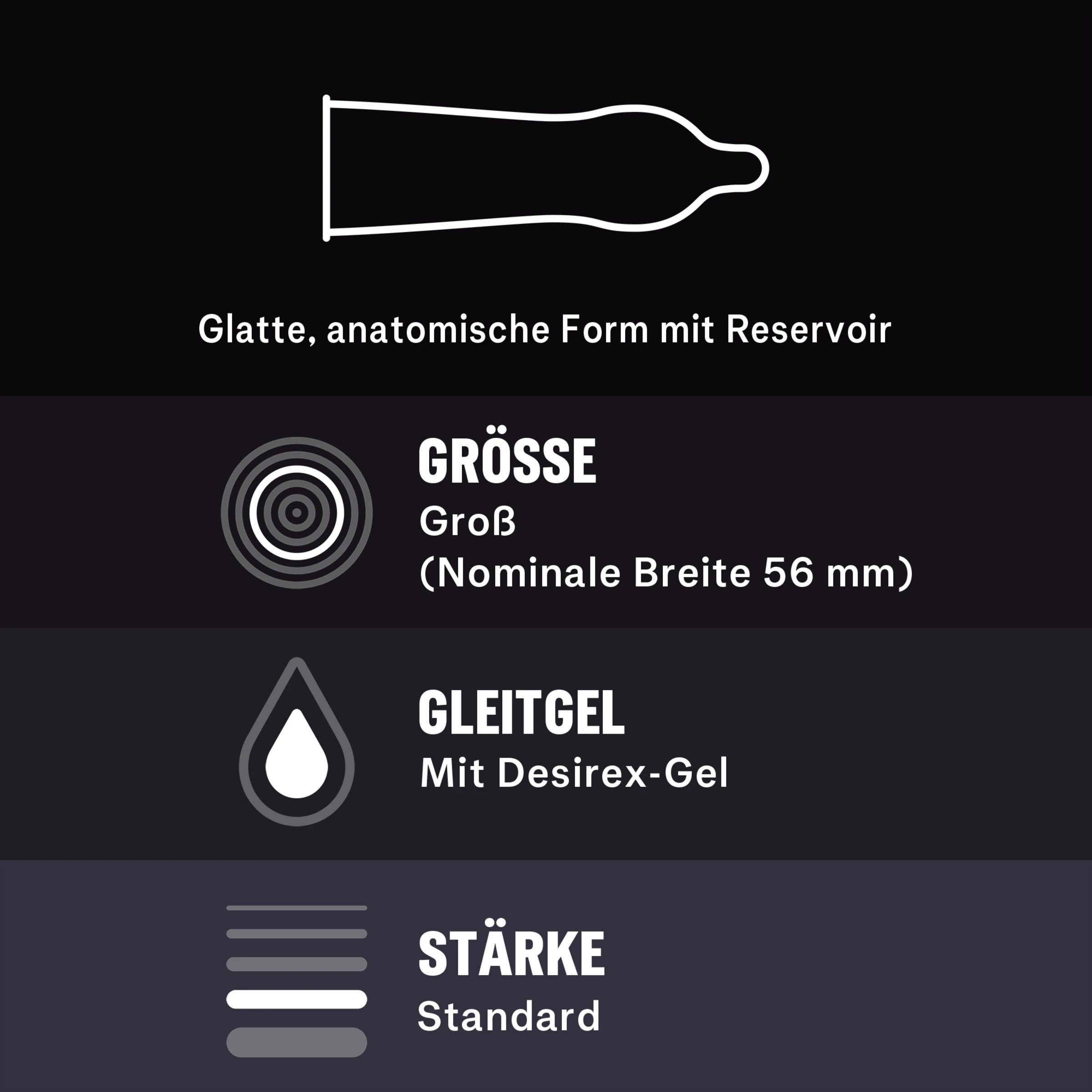 Bitte lesen Sie den Beipackzettel dieser Packung sorgfältig durch, besonders dann, wenn Sie die Kondome für Anal- oder Oralsex verwenden. Es gibt keine Verhütungsmethode, die einen 100%igen Schutz vor Schwangerschaft, HIV, oder sexuell übertragbaren Krankheiten bietet.