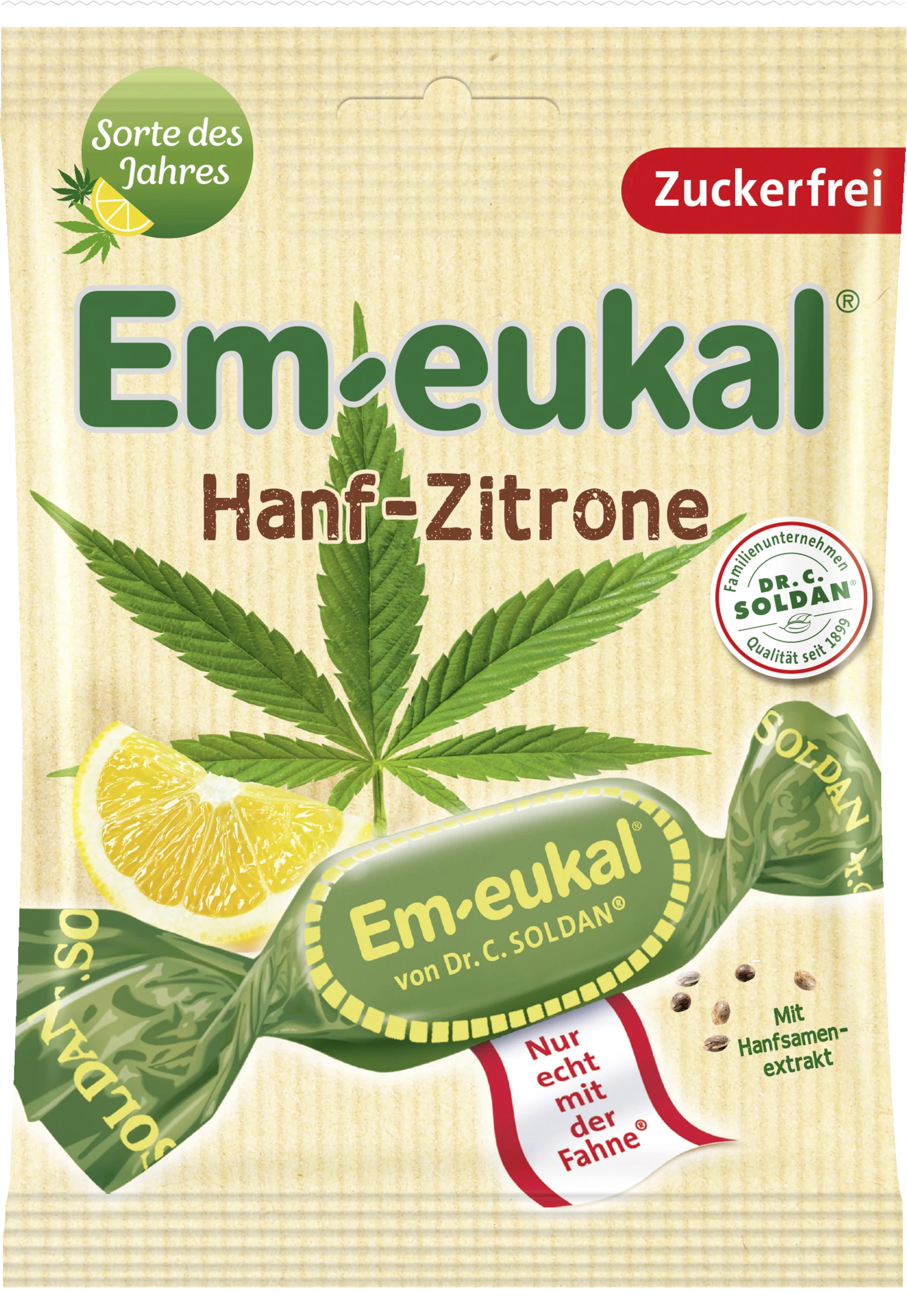 Mit seiner Kombination aus hochwertigem Hanfsamenextrakt, ausschließlich natürlichen Aromen und wertvollen, ätherischen Ölen überzeugt Em-eukal Hanf-Zitrone. Und lädt ein zu einem ganz besonderen, fruchtig-sanften Genuss. Hustenbonbon – zuckerfrei und daher zahnschonend. „Nur echt mit der Fahne“® – Garant für höchste Premiumqualität und Bonbonkochkunst.