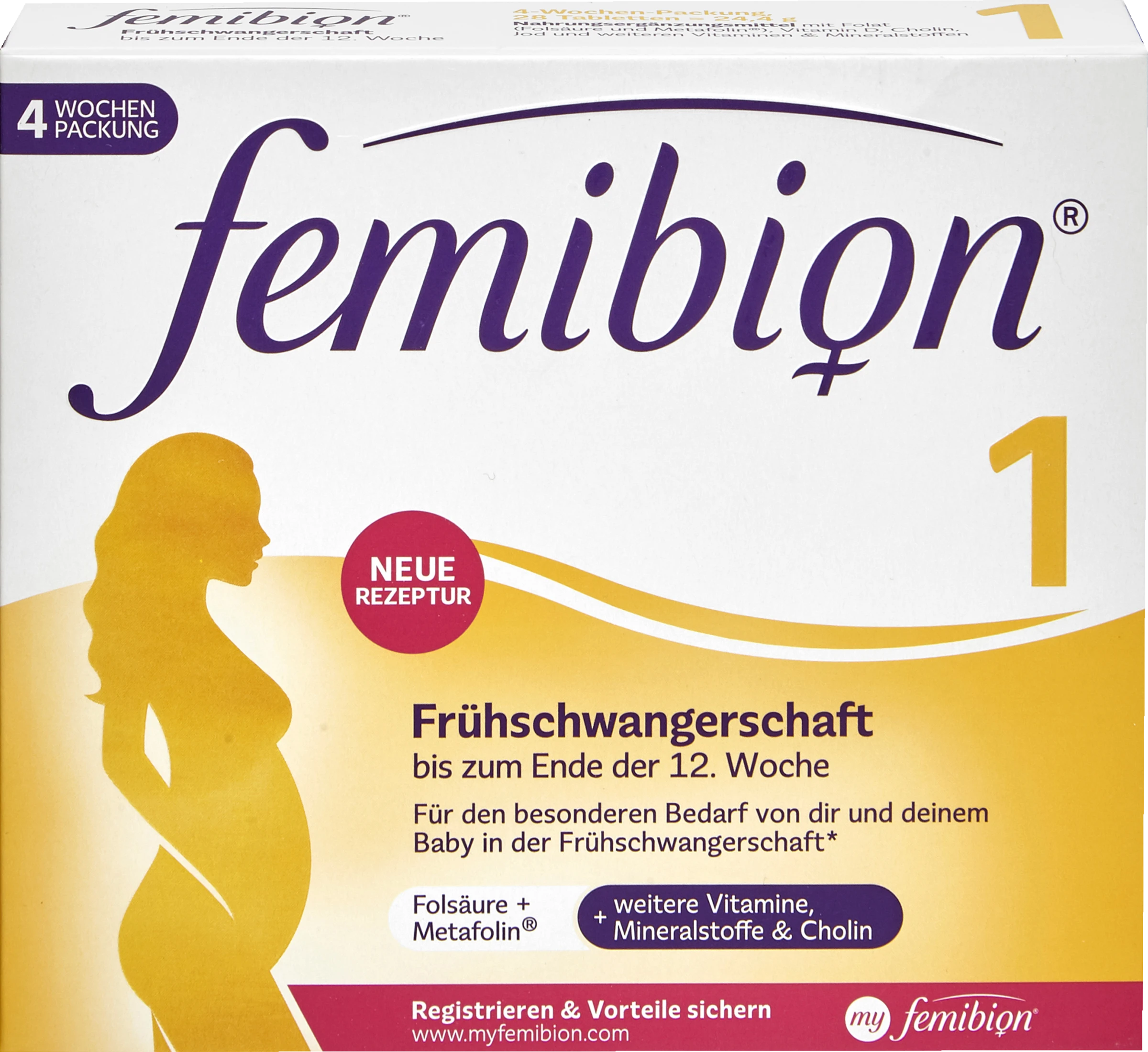 Sorge für einen guten Start deines Babys ins Leben, indem du dich bewusst ernährst. Femibion® 1 ist speziell auf deine Bedürfnisse ab Beginn der Schwangerschaft bis zum Ende des ersten Schwangerschaftsdrittels abgestimmt. Mit 800 µg Folat für den effektiven Aufbau des Folat-Spiegels in den ersten Schwangerschaftswochen.