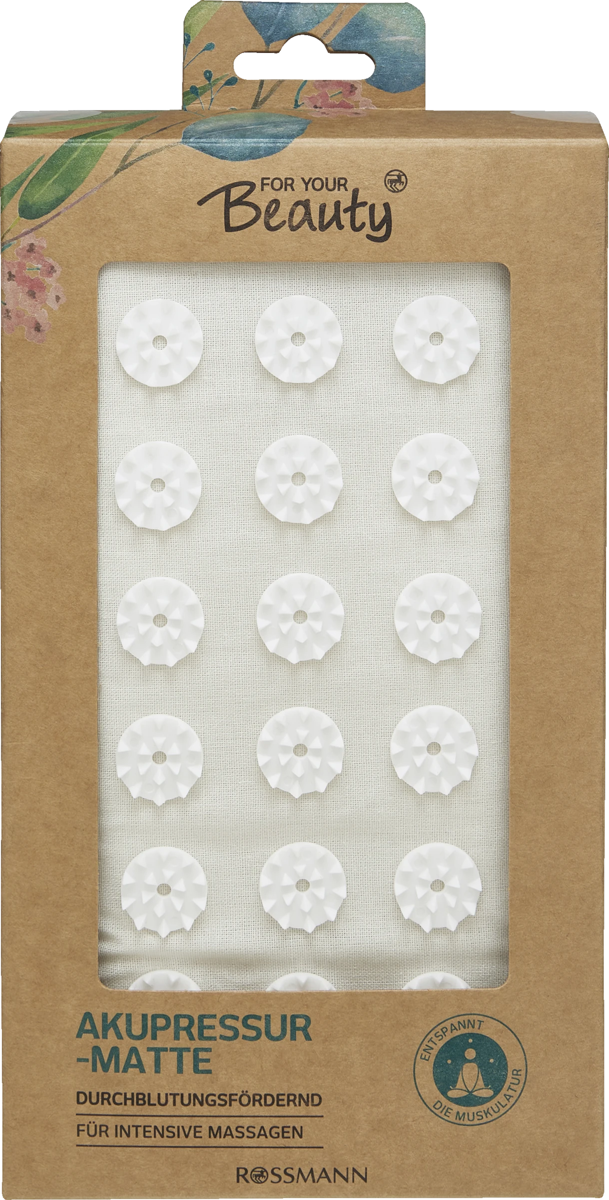 Die for your Beauty Akupressur-Matte bietet alle Vorteile der Akupressur, auch für unterwegs. Basierend auf den Kenntnissen der traditionellen, chinesischen Medizin soll es vor allem bei Nacken- und Schulterschmerzen, sowie Verspannungen im unteren Rückenbereich helfen und diese lösen. Die Matte ist mit kleinen runden Nagelkreisen mit Kunststoffspitzen besetzt, die die Durchblutung fördern. Der Gurt kann ganz einfach um den Rücken gebunden oder als Kissen verwendet werden. Dabei wird die beste Wirkung bei der Anwendung auf nackter Haut erzielt. Eine 12- bis 20-minütige Anwendung reicht aus, um den gewünschten Effekt zu erreichen.