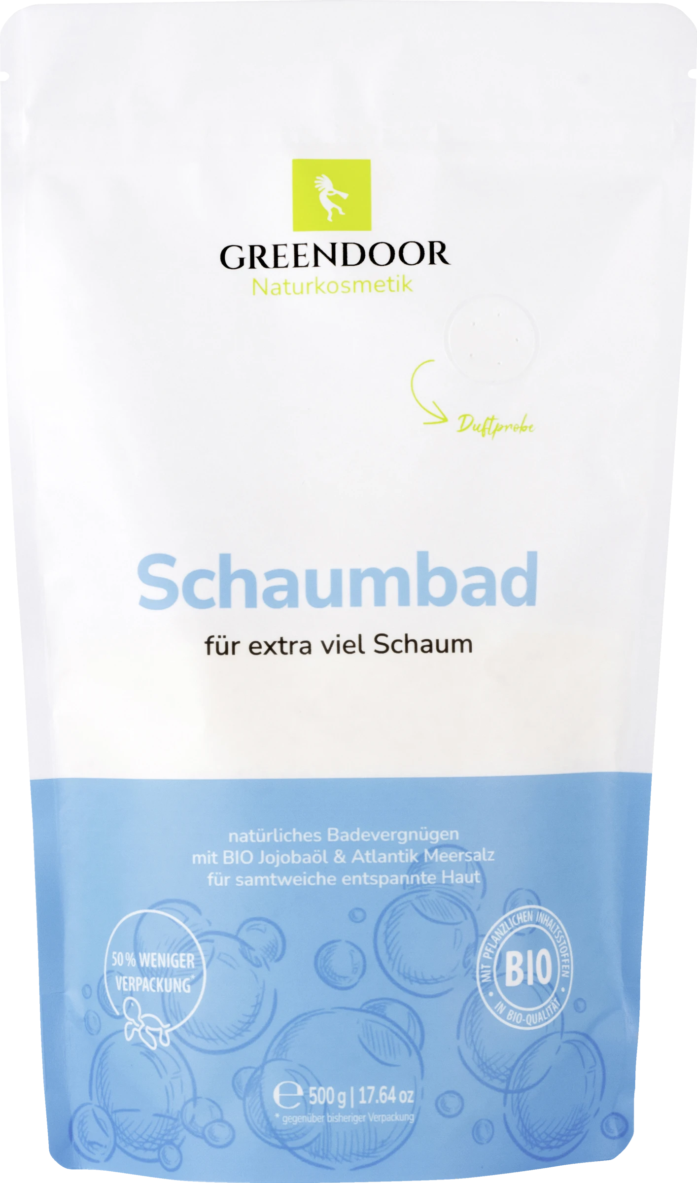 Das Greendoor Schaumbad ist natürliches Baden ohne reizende Tenside und dennoch mit einem sinnlichen Schaumerlebnis. Bio Jojobaöl und Molke pflegen Ihre Haut samtweich. Sie sind besonders sanft und pflegend zur Haut ohne diese zu überfetten. Atlantik Meersalz führt dem Badewasser natürliche Mineralien aus dem Meer zu.