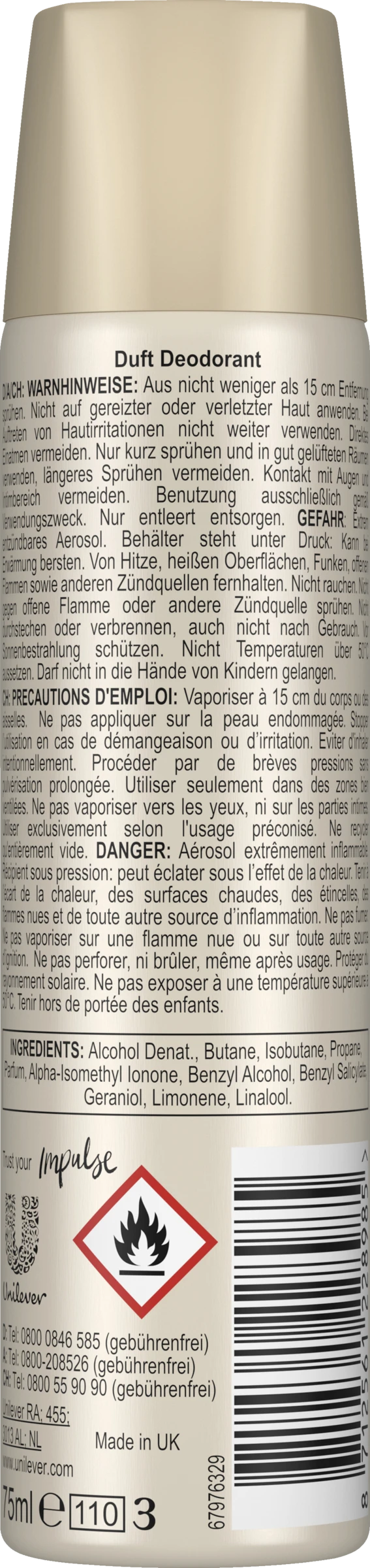 Alcohol Denat., Butane, Isobutane, Propane, Parfum,Alpha-Isomethyl Ionone, Benzyl Alcohol, Benzyl Salicylate,Geraniol, Limonene, Linalool