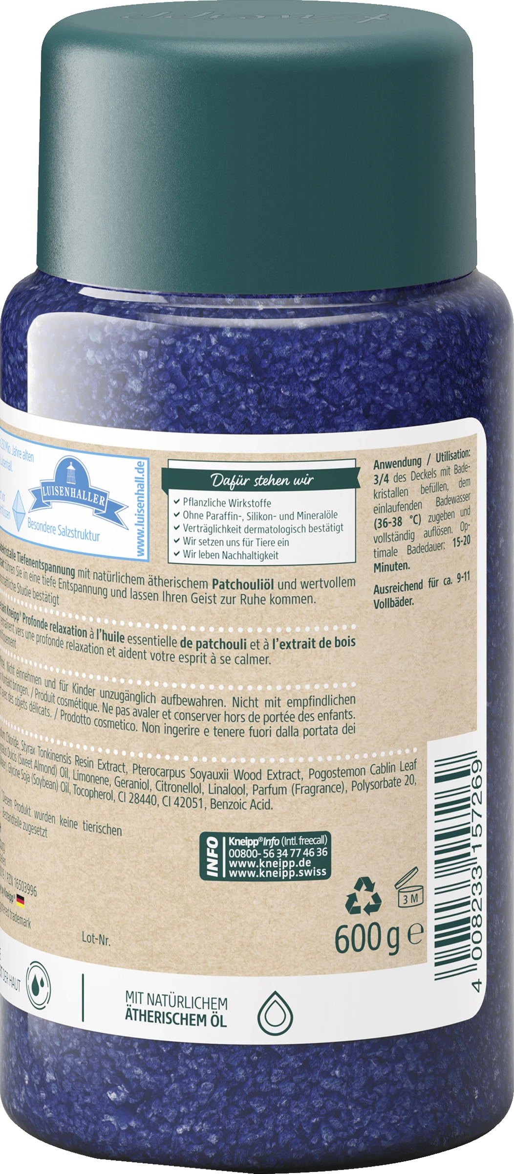 Die Kneipp® Badekristalle Tiefenentspannung mit natürlichem ätherischem Patchouliöl und wertvollem Sandelholzextrakt führen Sie in eine tiefe Entspannung und lassen Ihren Geist zur Ruhe kommen.