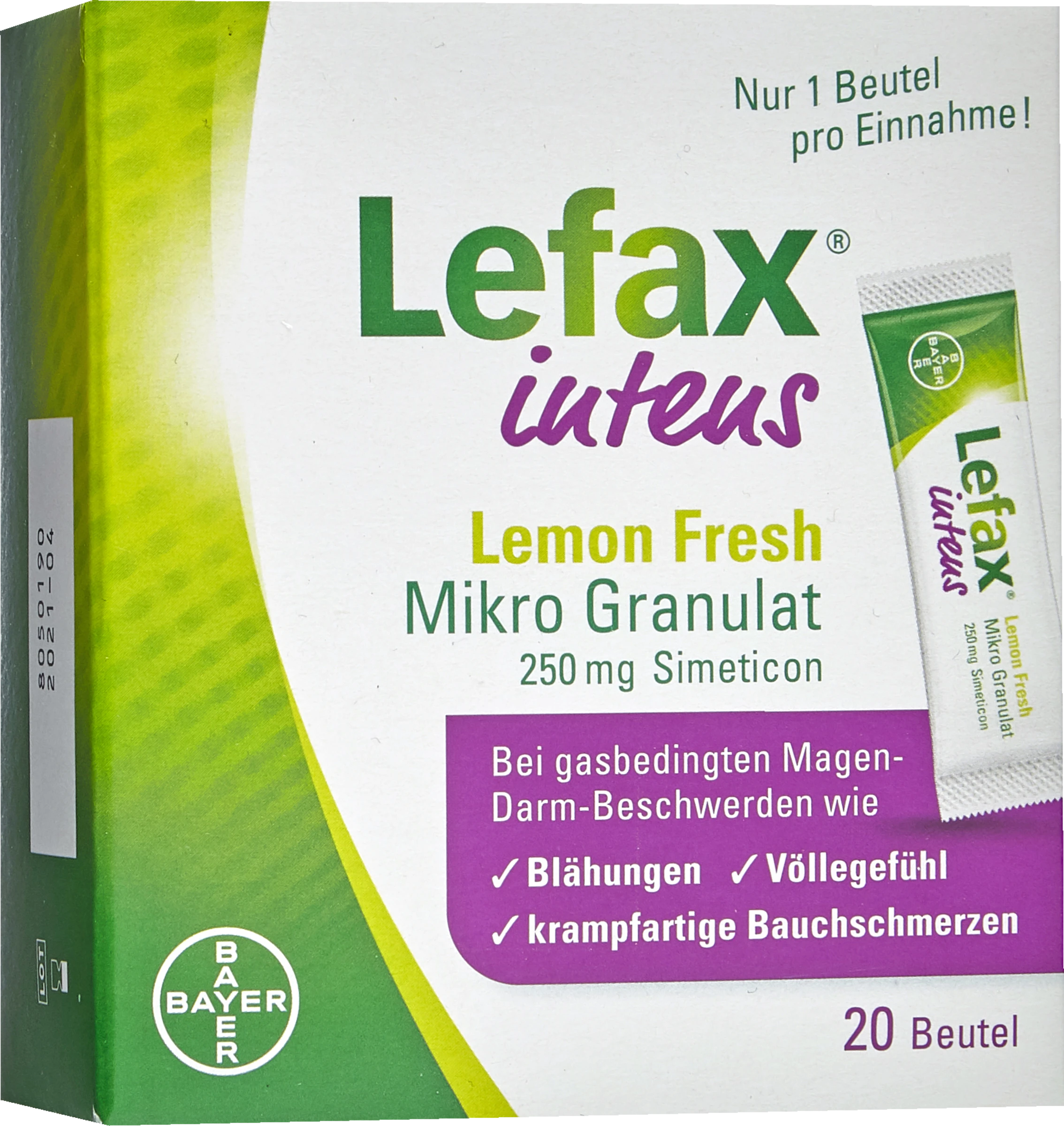 1 Beutel enthält: 250 mg Simeticon. Sonstige Bestandteile: Zitronenaroma, Apfelsäure, Sahnearoma, Sorbitol, Talkum. Enthält Sorbitol. Für Diabetiker geeignet.