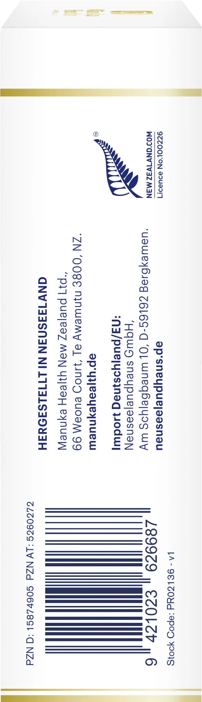 Rohrzucker, Glukosesirup, MGO 400+ Manuka Honig (Leptospermum scoparium, 4,5 %), Wasser, Propolis (2 %), Zitronenöl, Vitamin C