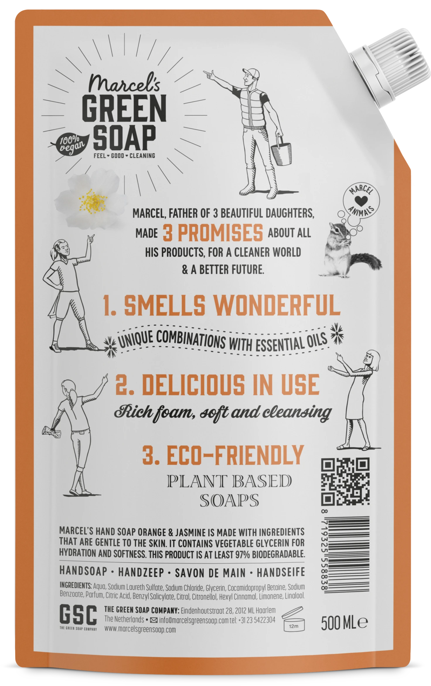 Marcel’s Green Soap hat jetzt 500-ml-Standbeutel mit Handseife. Damit können Sie die 250 ml und 500 ml Handseifenflaschen nachfüllen. Wer hat gesagt, nachhaltig ist nicht billig!
