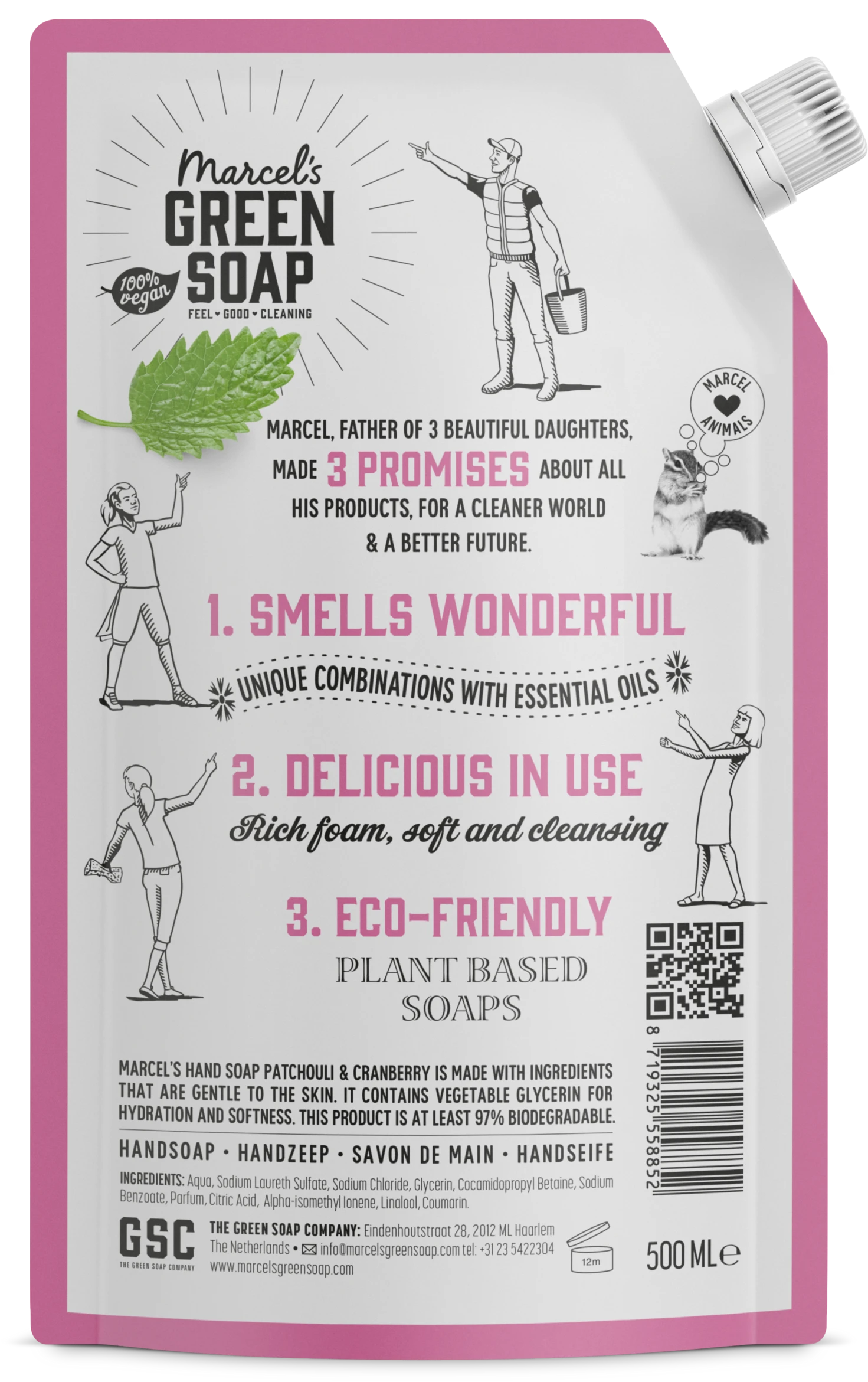 Marcel’s Green Soap hat jetzt 500-ml-Standbeutel mit Handseife. Damit können Sie die 250 ml und 500 ml Handseifenflaschen nachfüllen. Wer hat gesagt, nachhaltig ist nicht billig!