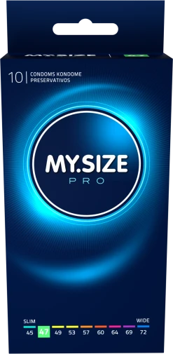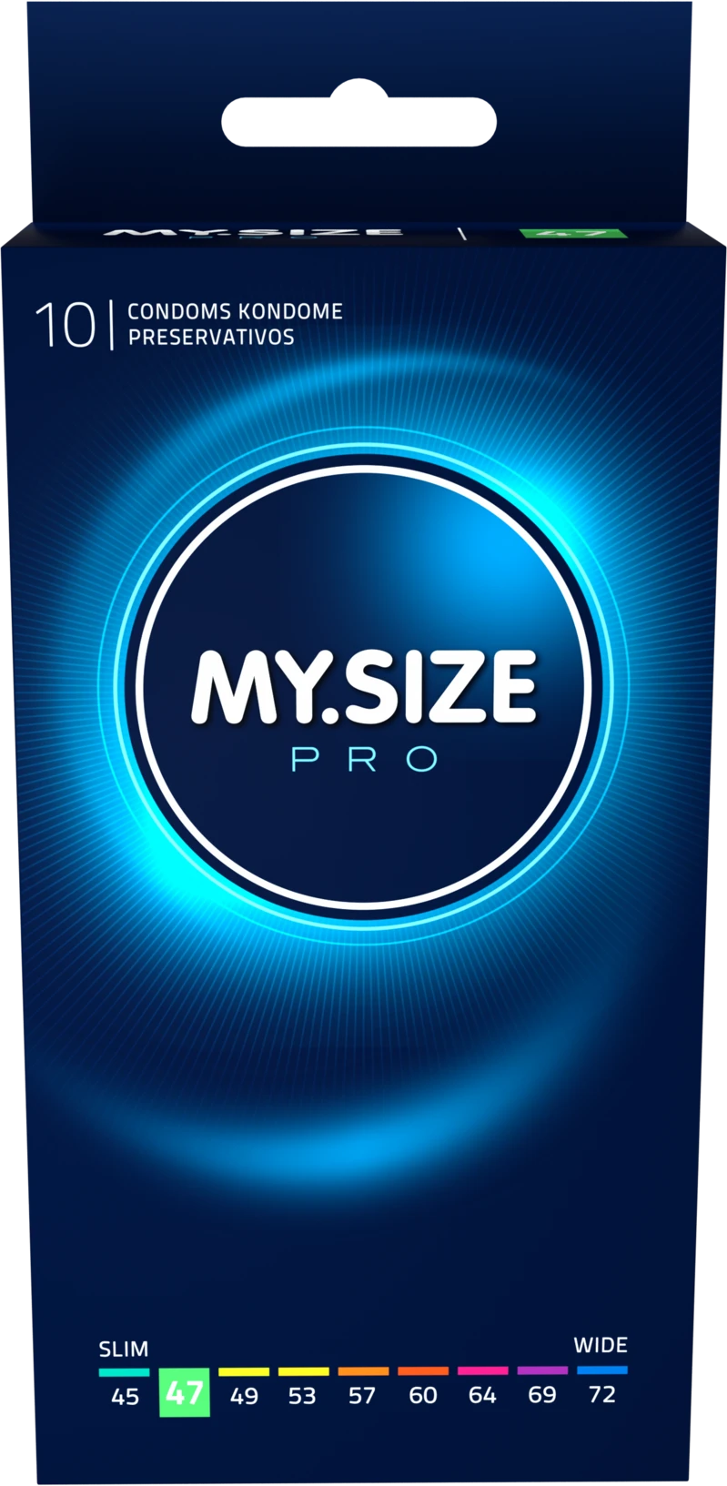 MYSIZE PRO – dünne Kondome für mehr Sicherheit durch richtigen Sitz bei gleichzeitig intensivem Gefühl. Mehr Sicherheit, durch individuell abgestimmte Paßform. Besonders allergenarm und geruchsneural durch die Verwendung von hochgradig reinem VYTEX-Latex. Die minimale Wandstärke von 0,05 bis 0,06 mm ist besonders dünn und damit besonders gefühlsecht. Nachhaltig und vegan. Weit oberhalb der Norm liegende Qaulität. Alle Kondome entsprechen der EU-Richtlinie für Medizinprodukte 93/42 EWG.? MY.SIZE PRO Kondome 47 mm, glatt, zylindrisch, transparent, mit Resrvoir, mit Gleitmittel.