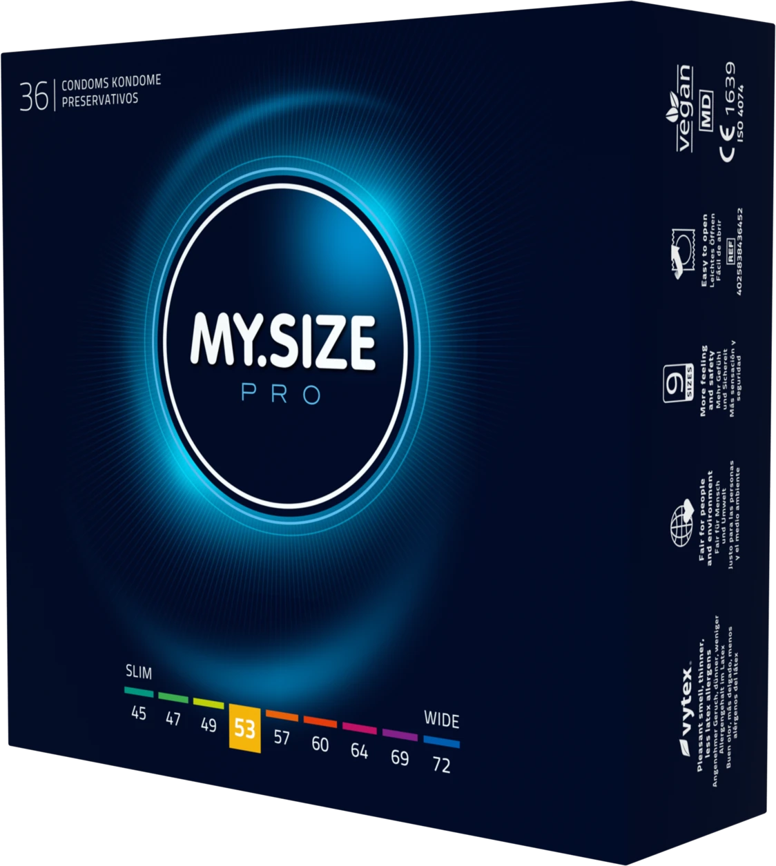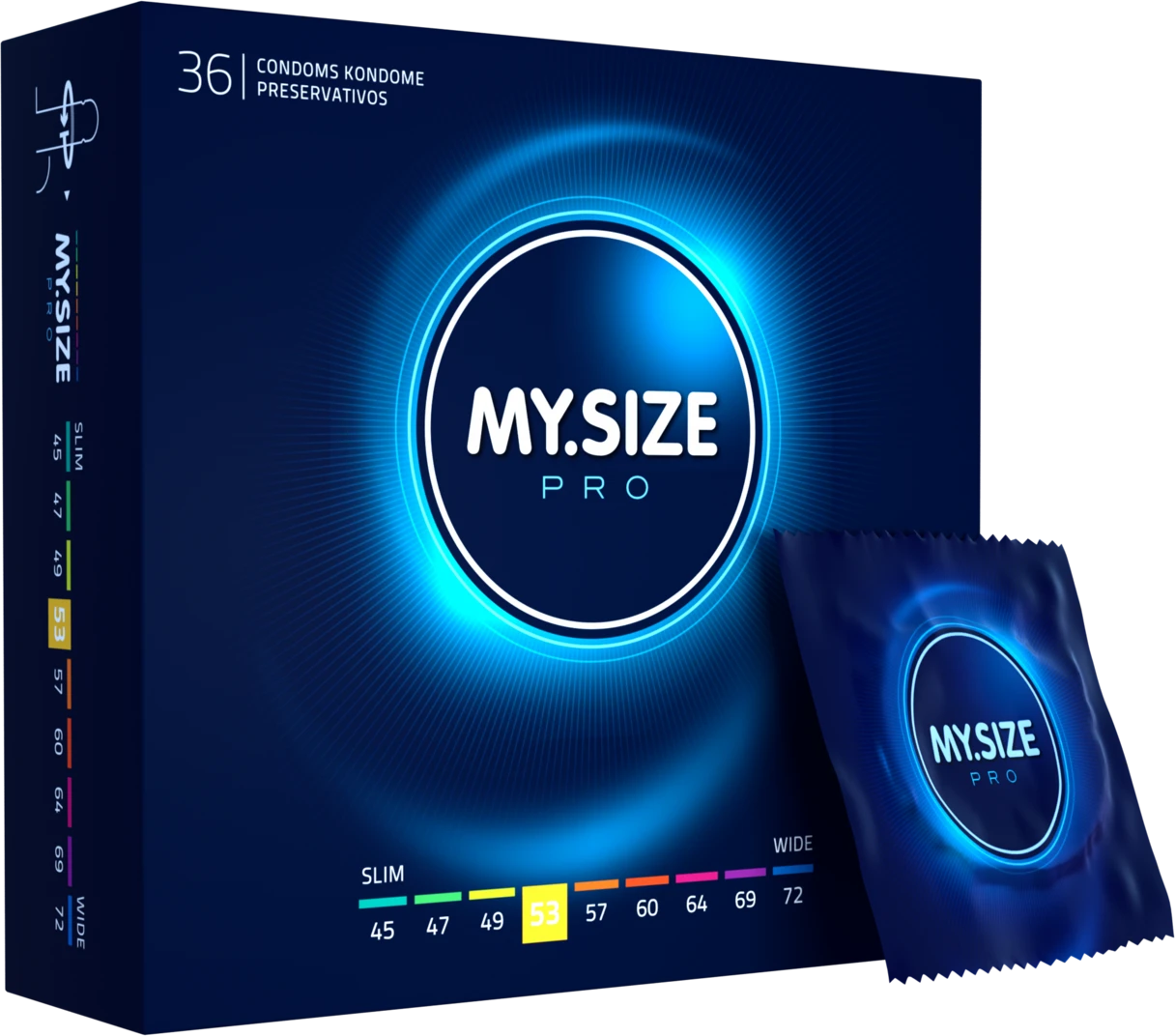 MYSIZE PRO – dünne Kondome für mehr Sicherheit durch richtigen Sitz bei gleichzeitig intensivem Gefühl. Mehr Sicherheit, durch individuell abgestimmte Paßform. Besonders allergenarm und geruchsneural durch die Verwendung von hochgradig reinem VYTEX-Latex. Die minimale Wandstärke von 0,05 bis 0,06 mm ist besonders dünn und damit besonders gefühlsecht. Nachhaltig und vegan. Weit oberhalb der Norm liegende Qaulität. Alle Kondome entsprechen der EU-Richtlinie für Medizinprodukte 93/42 EWG.? MY.SIZE PRO Kondome 53 mm, glatt, zylindrisch, transparent, mit Resrvoir, mit Gleitmittel.