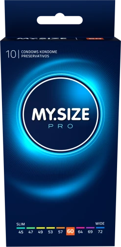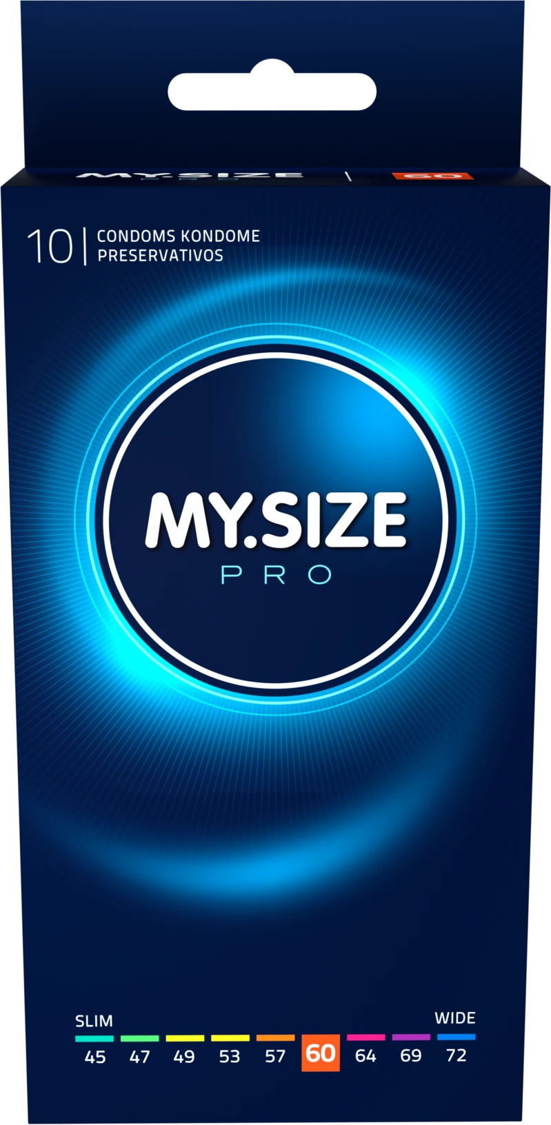 MYSIZE PRO – dünne Kondome für mehr Sicherheit durch richtigen Sitz bei gleichzeitig intensivem Gefühl. Mehr Sicherheit, durch individuell abgestimmte Paßform. Besonders allergenarm und geruchsneural durch die Verwendung von hochgradig reinem VYTEX-Latex. Die minimale Wandstärke von 0,06 bis 0,07 mm ist besonders dünn und damit besonders gefühlsecht. Nachhaltig und vegan. Weit oberhalb der Norm liegende Qaulität. Alle Kondome entsprechen der EU-Richtlinie für Medizinprodukte 93/42 EWG.? MY.SIZE PRO Kondome 60 mm, glatt, zylindrisch, transparent, mit Resrvoir, mit Gleitmittel.
