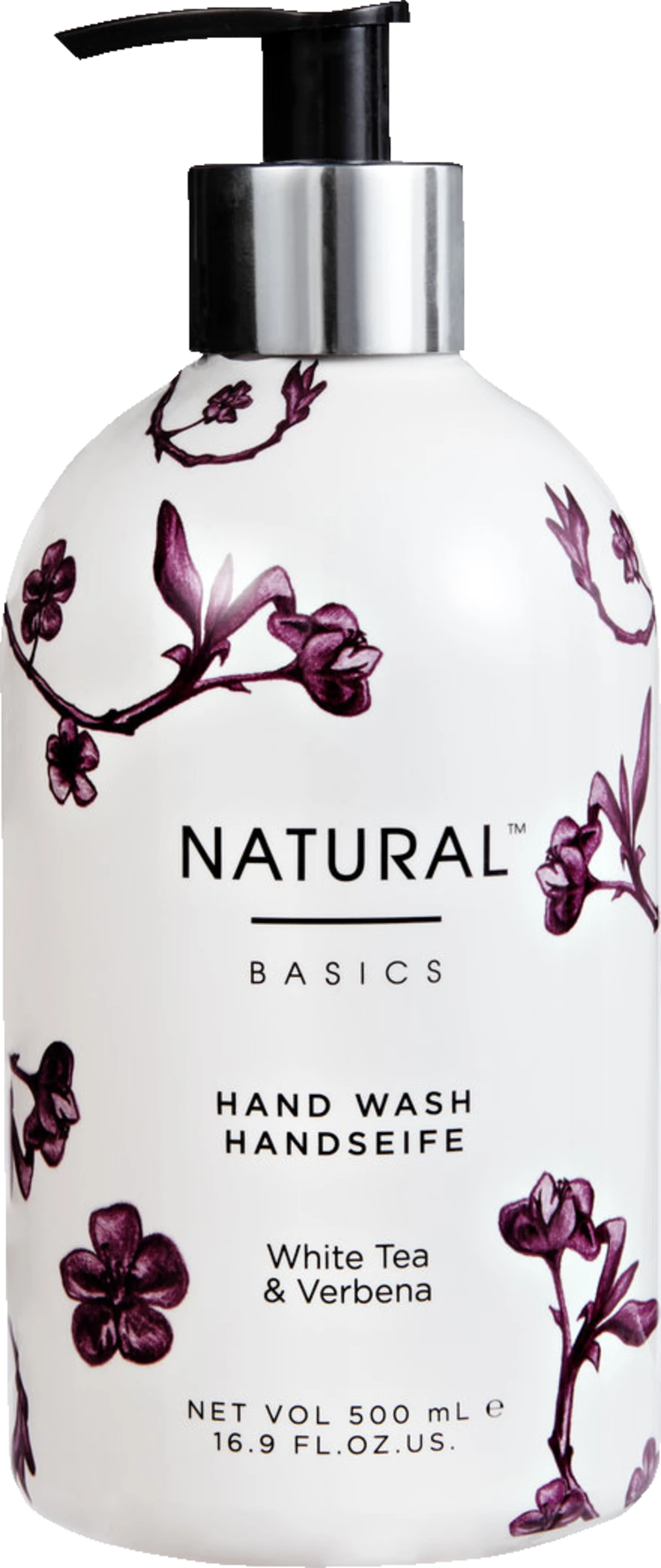 Die Natural Basics Flüssigseife ist mit dem erfrischenden Duft von weißem Tee und Eisenkraut angereichert. Die Handseife enthält keine Parabene und sorgt mit ihren natürlichen Inhaltsstoffen für eine sensitive Pflege. Das stilvolle Floraldesign macht jedes Händewaschen zu einem luxuriösen Wohlfühlmoment.
