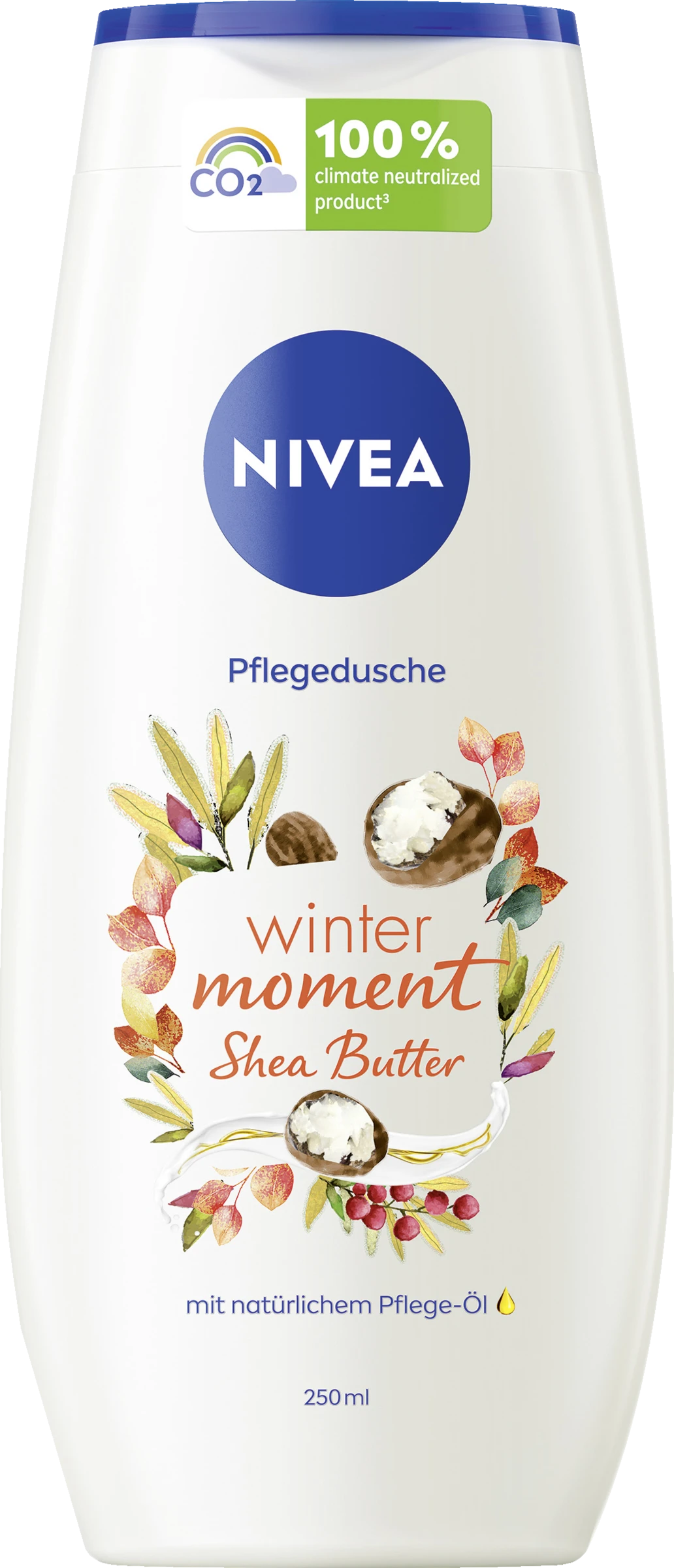 Erleben Sie ein verwöhnendes Duscherlebnis in der kalten Jahreszeit mit der NIVEA Pflegedusche Winter Moment Shea Butter. Spüren Sie, wie das cremige Duschgel dank der Formel mit natürlichem Pflege-Öl und Vitamin C & E Ihre Haut unter der Dusche sanft reinigt und pflegt. Der zarte Duft von Shea Butter verwöhnt dabei Ihre Sinne. Das Duschgel ist zu 100% klimaneutralisiert und tut damit nicht nur Ihrer Haut, sondern auch der Umwelt etwas Gutes. Die Formel ist zu 99% biologisch abbaubar und enthält keine festen Mikroplastik-Partikel. Die Flasche besteht zu 97% aus Recycling-Material, ohne Verschlusskappe und Label. Für ein verwöhnendes Duscherlebnis im Winter.