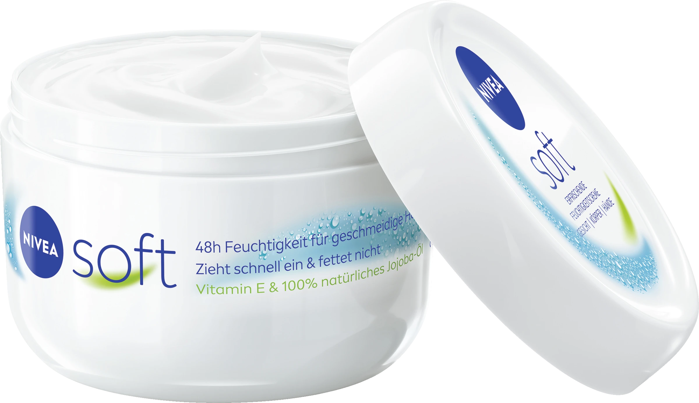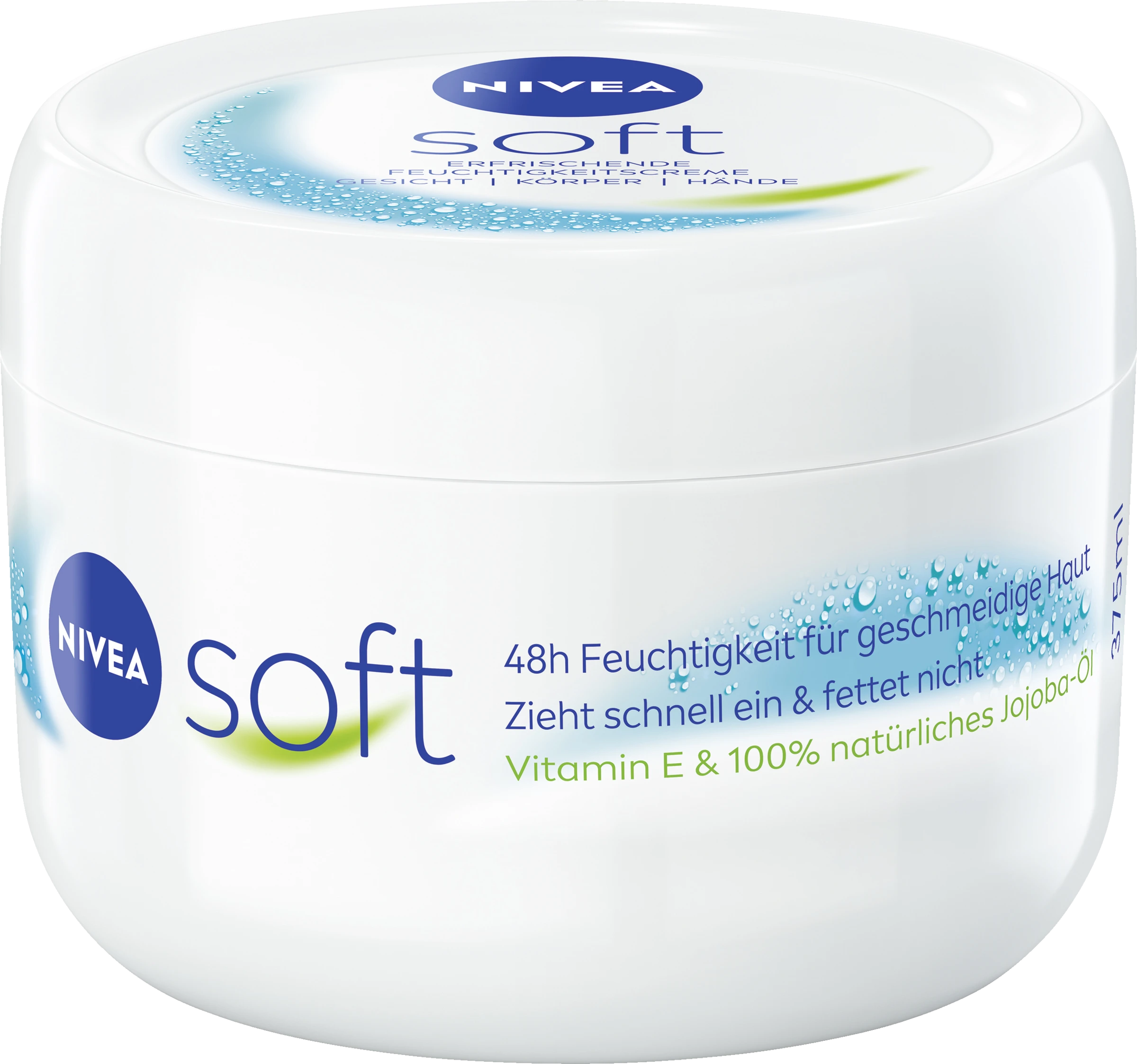 Die NIVEA Soft erfrischende Feuchtigkeitscreme verleiht Ihrer Haut einen belebenden Frische-Kick und ist für die tägliche Anwendung geeignet. Die leichte Formel mit Vitamin E und 100% natürlichem Jojoba-Öl spendet Ihrer Haut 48h intensive Feuchtigkeit, zieht schnell ein und klebt nicht. Ihre Haut ist fühlbar entspannter, erfrischter und weicher. 100% klimaneutralisiertes Produkt*.