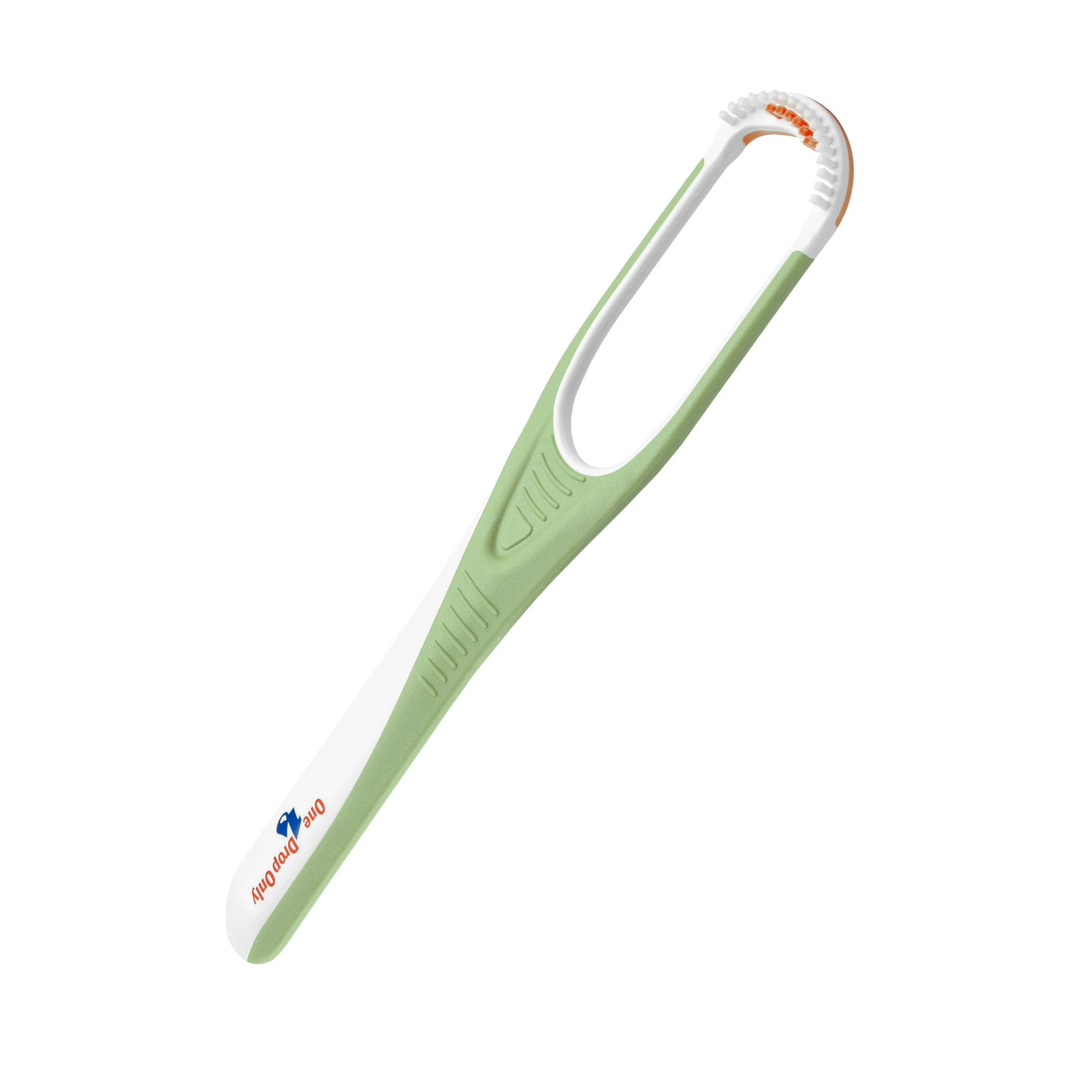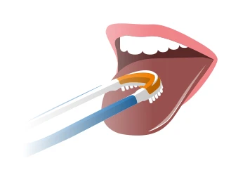 Mehrmals die Borstenseite von hinten nach vorne über die herausgestreckte Zunge führen. Zungenreiniger umdrehen. Die gleiche Bewegung mit der Schaberseite wiederholen. 1 bis 2mal täglich anwenden. Zungenreiniger nach Anwendung wie eine Zahnbürste unter fließendem warmem Wasser reinigen.