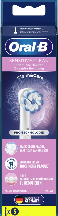 Der Oral-B Sensitive Clean Bürstenkopf ist stark gegen Plaque und sanft zum Zahnfleisch. Die ultra-dünnen Borsten helfen Zahnfleischentzündungen zu reduzieren und entfernen sanft bis zu 100% mehr Plaque als eine Handzahnbürste. 100% Pass-Garantie für alle Oral-B Braun elektrische Zahnbürsten, außer Pulsonic & iO. Designed & made in Germany.