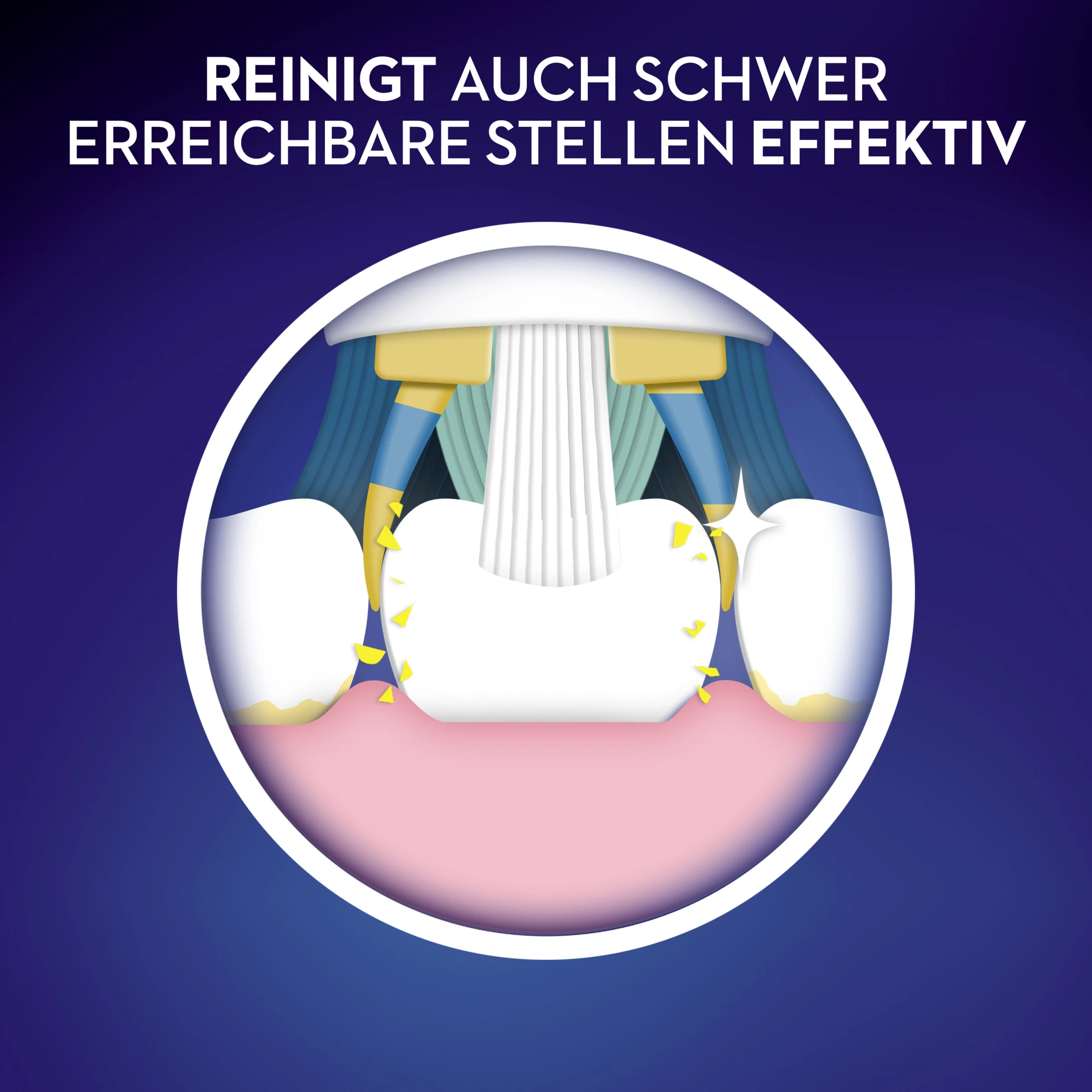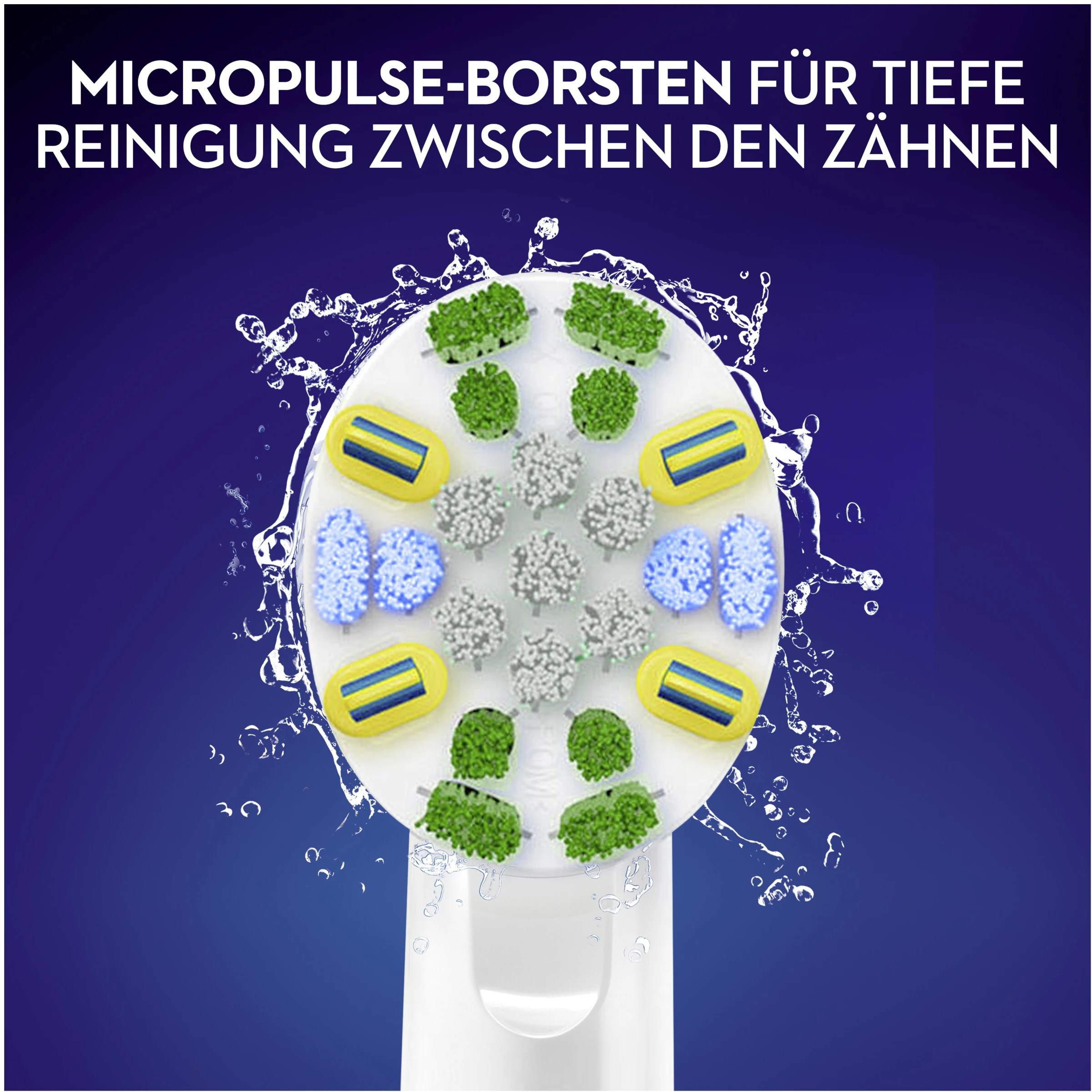 Der Oral-B Tiefenreinigung Bürstenkopf sorgt mit den speziellen MicroPulse-Borsten für eine tiefe Reinigung zwischen den Zähnen. Er hilft Zahnfleischentzündungen zu reduzieren und entfernt bis zu 100% mehr Plaque als eine Handzahnbürste. Die innovative CleanMaximiser-Technologie färbt grüne Borsten gelb und signalisiert so den optimalen Zeitpunkt zum Wechseln für die beste Reinigung. 100% Pass-Garantie für alle Oral-B Braun elektrische Zahnbürsten, außer Pulsonic & iO. Designed & made in Germany.