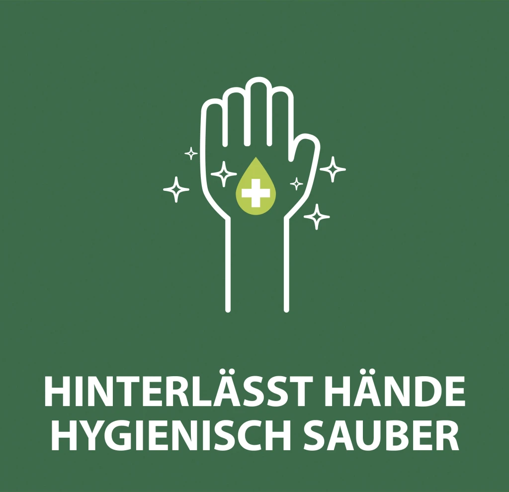 Die Hände unter fließendem Wasser anfeuchten und gründlich einseifen, dabei Fingerzwischenräume und Nägel nicht vergessen. Die Handseife 20-30 Sekunden sanft einreiben. Die Hände unter fließendem Wasser gut abspülen und anschließend sorgfältig abtrocknen, auch zwischen den Fingern.