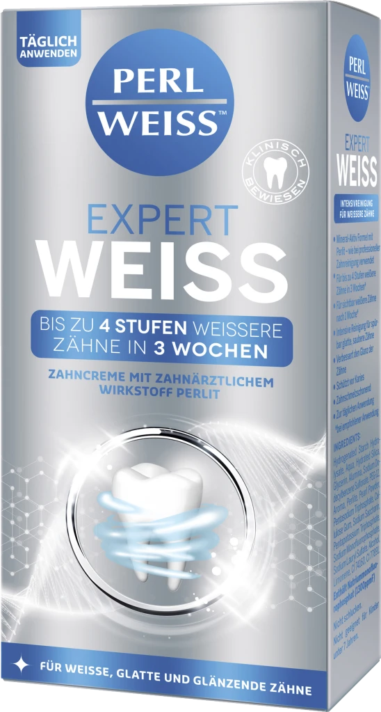 Zahnweiss-Zahncreme mit innovativer Technologie und Inhaltsstoff wie vom Zahnarzt verwendet – für saubere, glänzendere und weißere Zähne.