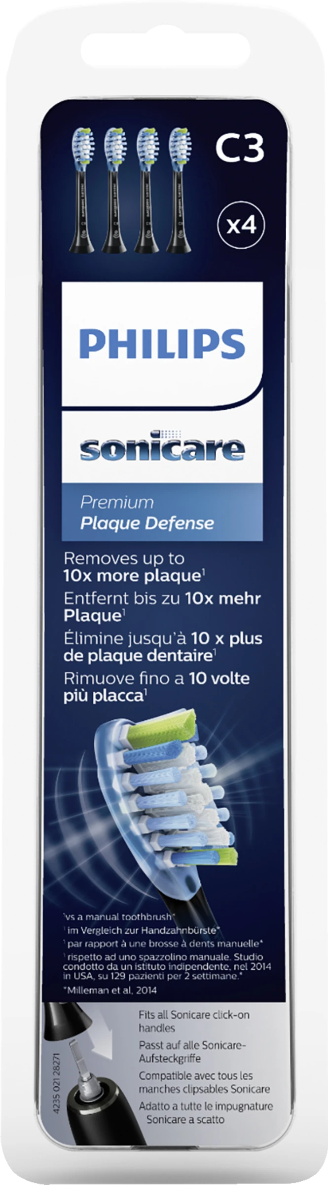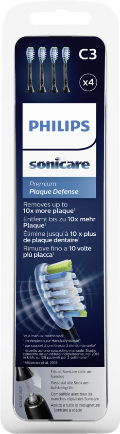 Eine Reinigung so einzigartig wie Ihr Lächeln. Der C3 Premium Plaque Defence-Bürstenkopf passt sich den Konturen von Zähnen und Zahnfleisch dank weicher, biegsamer Seiten an, die 4 x mehr Oberflächenkontakt als ein herkömmlicher Bürstenkopf** und dadurch eine bequeme, gründliche Reinigung ermöglichen.