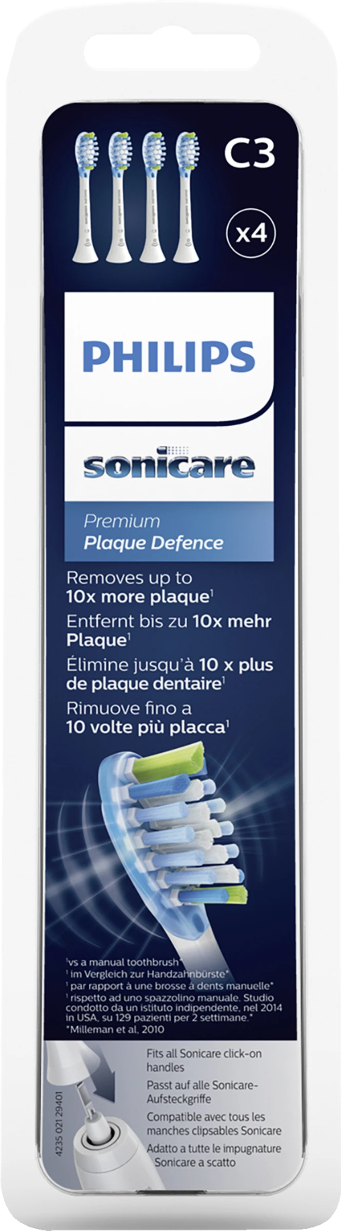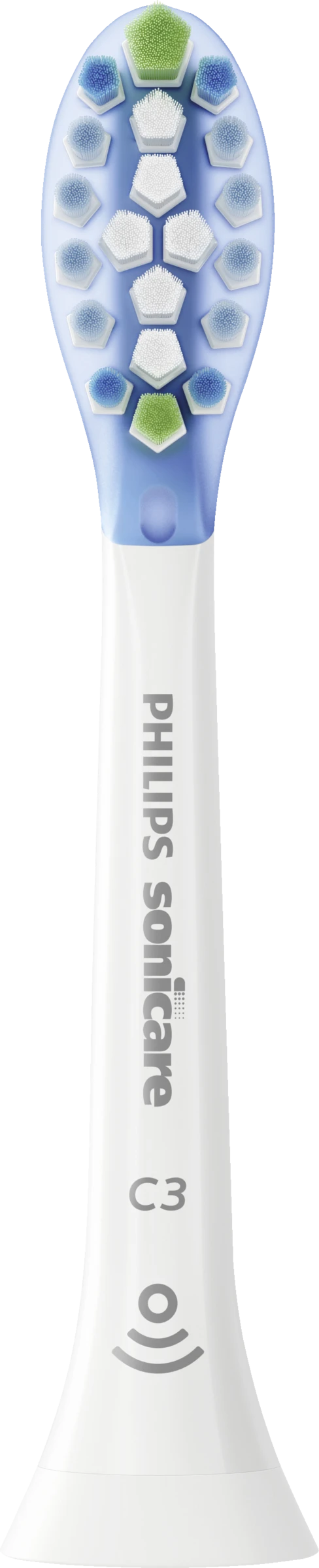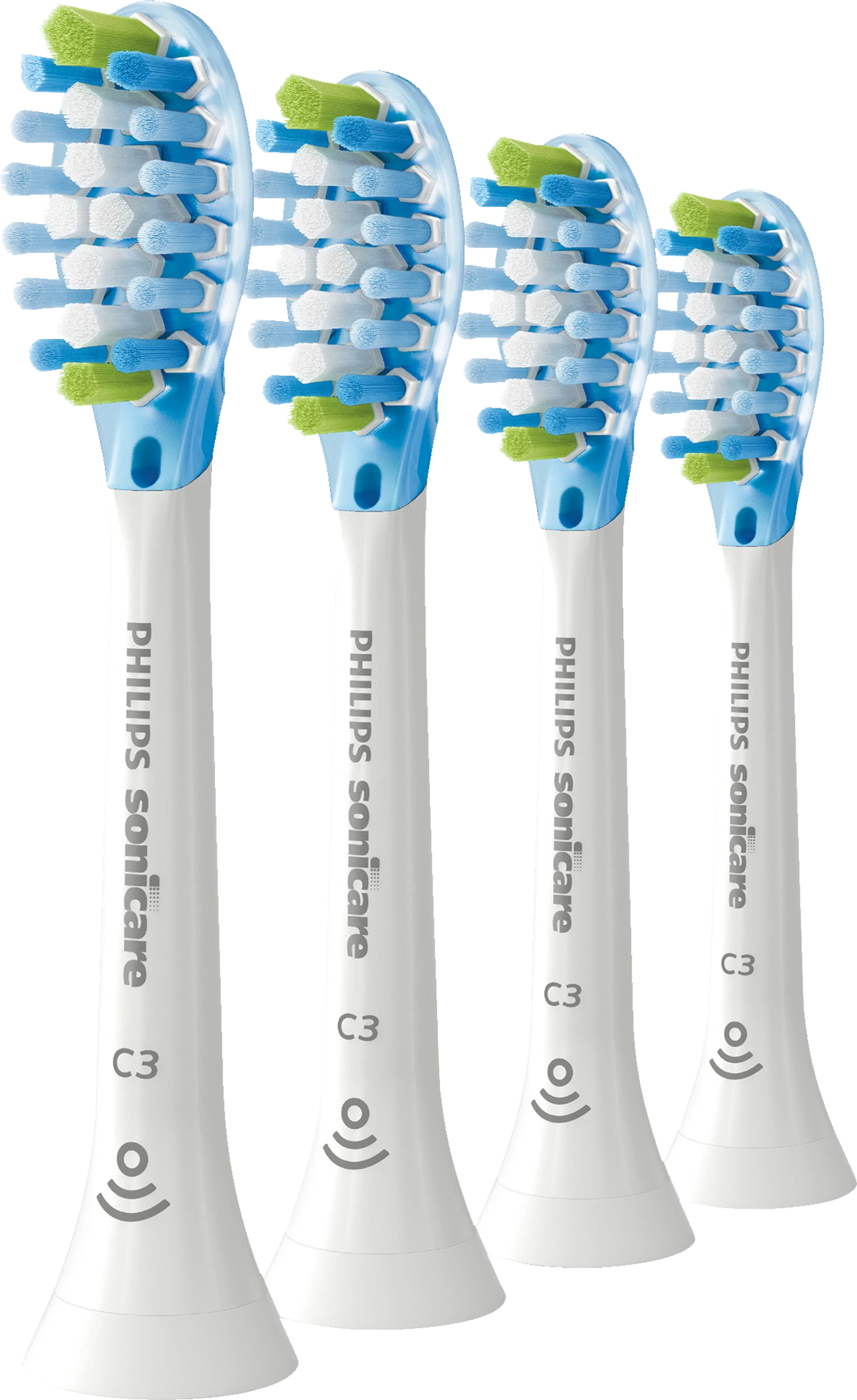 Eine Reinigung so einzigartig wie Ihr Lächeln. Der C3 Premium Plaque Defence-Bürstenkopf passt sich den Konturen von Zähnen und Zahnfleisch dank weicher, biegsamer Seiten an, die 4 x mehr Oberflächenkontakt als ein herkömmlicher Bürstenkopf** und dadurch eine bequeme, gründliche Reinigung ermöglichen.