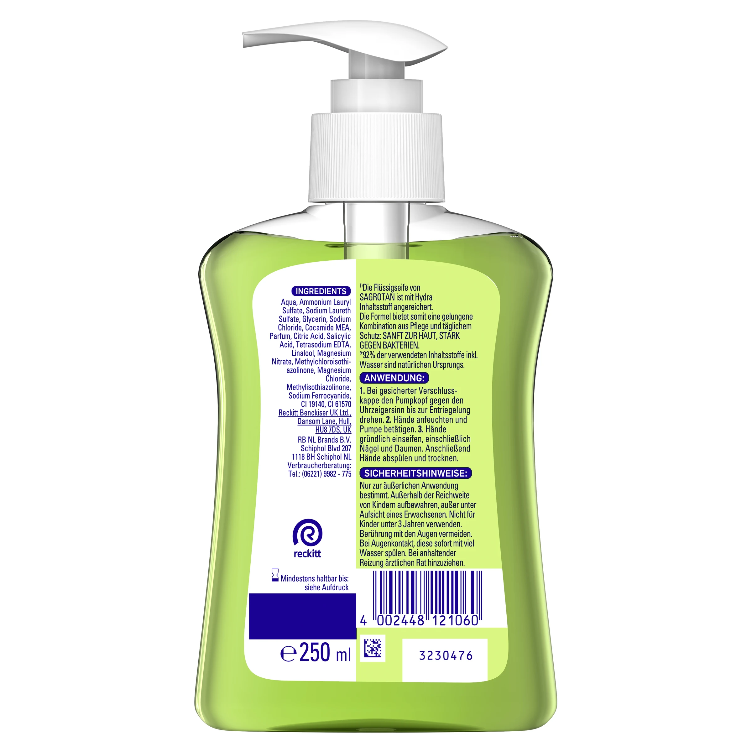 Die Flüssigseife von SAGROTAN ist SANFT ZUR HAUT und STARK GEGEN BAKTERIEN. Die Formel bietet eine gelungene Kombination aus sanfter Reinigung und täglichem Schutz. Sie erfrischt und ist antibakteriell.