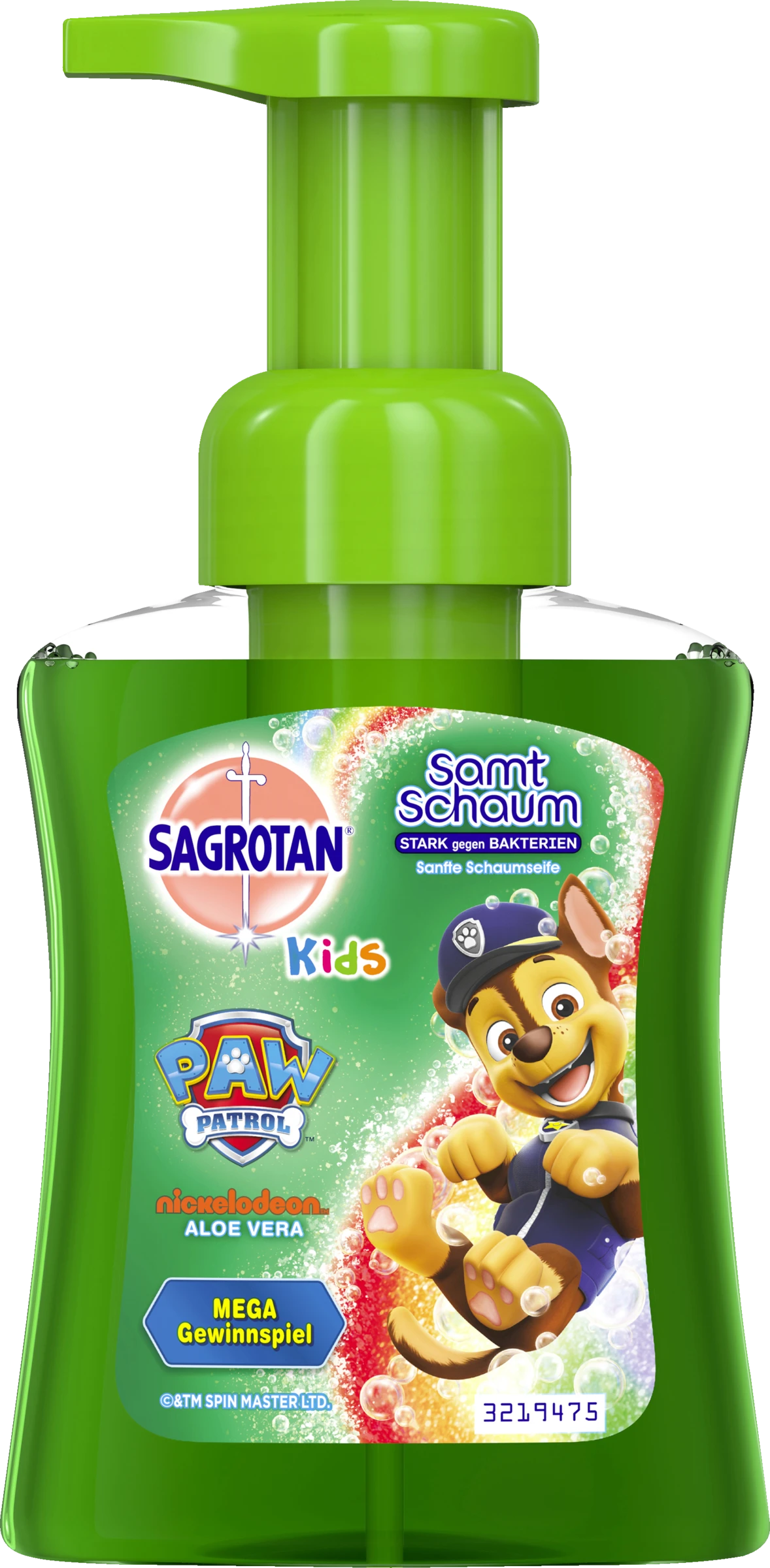 Sagrotan Kids Schaumseife ist ein Handwaschschaum mit Dual-Effekt: Sanfte Schaumseife – Stark gegen Bakterien. Er enthält mindestens 45% weniger chemische Inhaltsstoffe im Vergleich zu Sagrotan Flüssige Handseife pro Pumpanwendung. Der cremig-feste Reinigungsschaum ist eine gelungene Kombination aus Pflege und täglichem Schutz. Zudem ist die Schaumseife einfach zu verteilen und abzuspülen und sorgt mit dem farbigem Schaum für mehr Spaß beim Händewaschen.