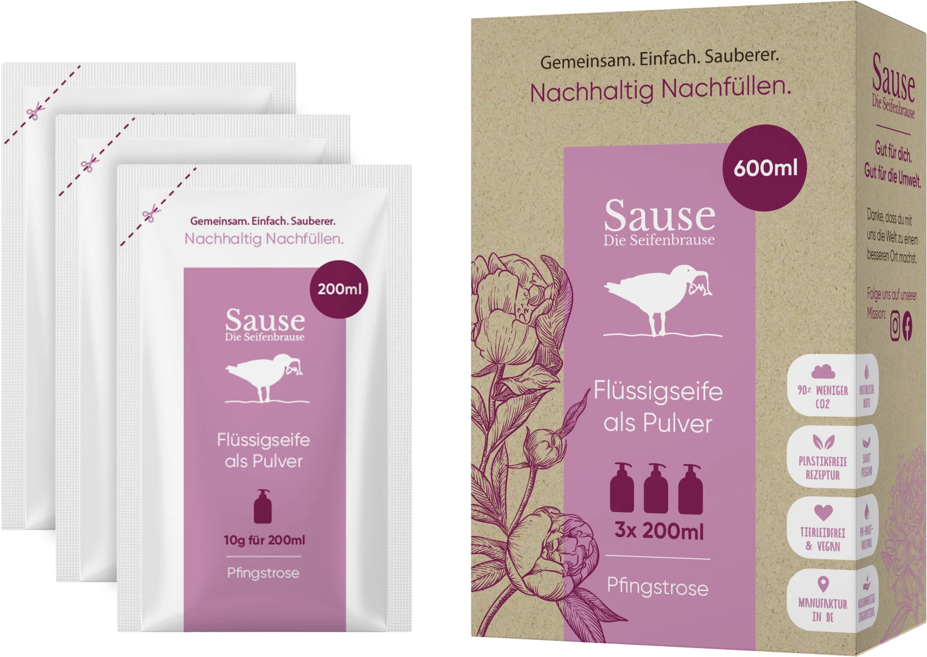 Die Sause Pfingstrose duftet nach einem Sommertag. Sie wirkt wunderbar beruhigend und die pflegenden Inhaltsstoffe sorgen für eine zusätzliche Hautpflege bei jedem Händewaschen.