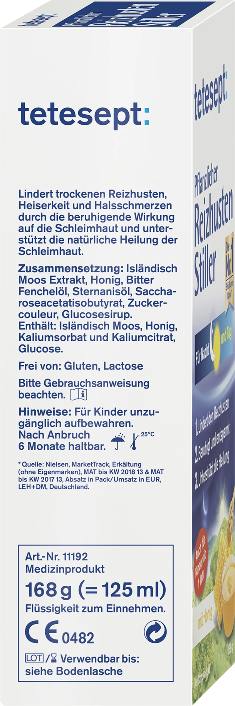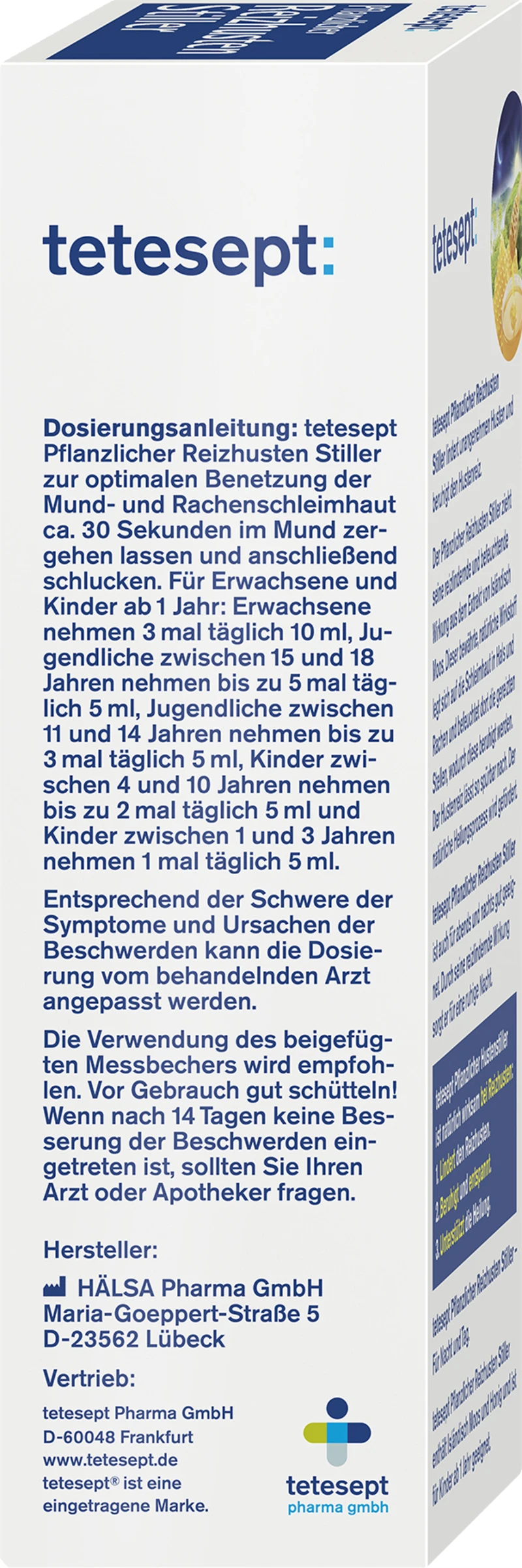 tetesept Pflanzlicher Reizhusten Stiller lindert unangenehmen trockenen Husten und beruhigt denHustenreiz.