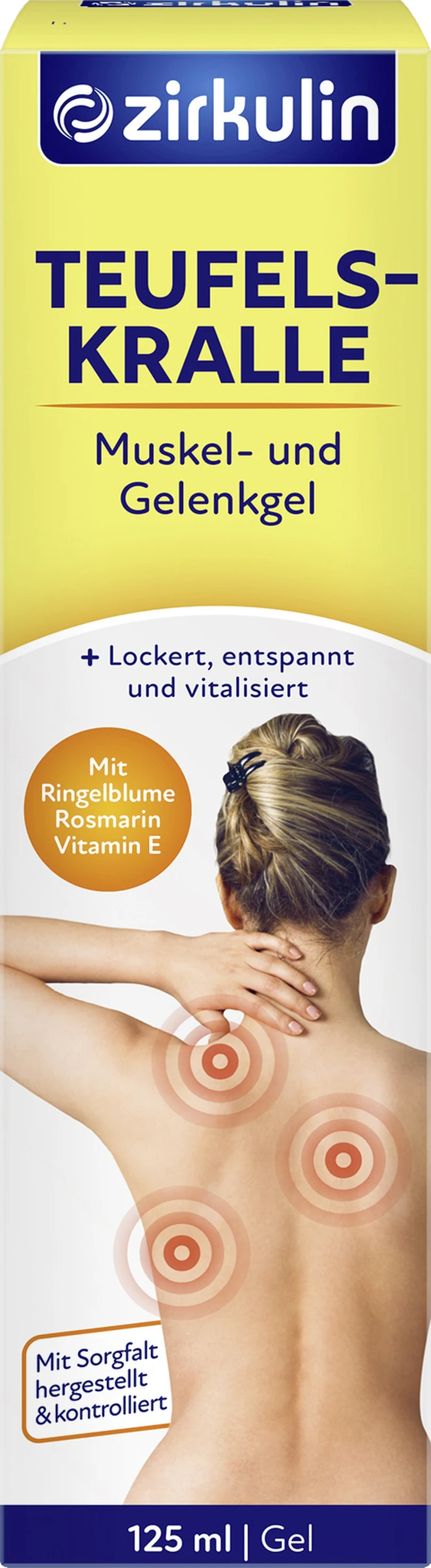 Zirkulin Teufelskralle Muskel- und Gelenkgel ist ideal für eine entspannende Massage zur Lockerung Ihrer Muskulatur und Entlastung leicht verkrampfter Körperpartien. Zirkulin Teufelskralle Muskel- und Gelenkgel enthält die bewährten Pflanzenextrakte aus Teufelskralle, Ringelblume und Rosmarin. Das leicht kühlende Gel sorgt zusätzlich durch seine feuchtigkeitsspendende Pflegeformel mit Vitamin E für ein angenehmes Hautgefühl. Zirkulin Teufelskralle Muskel- und Gelenkgel zieht schnell ein, fettet nicht und duftet frisch. Angenehm aufzutragen – besonders auch an heißen Tagen. Ideal zum Einmassieren nach dem Duschen, vor und nach sportlichen Aktivitäten.
